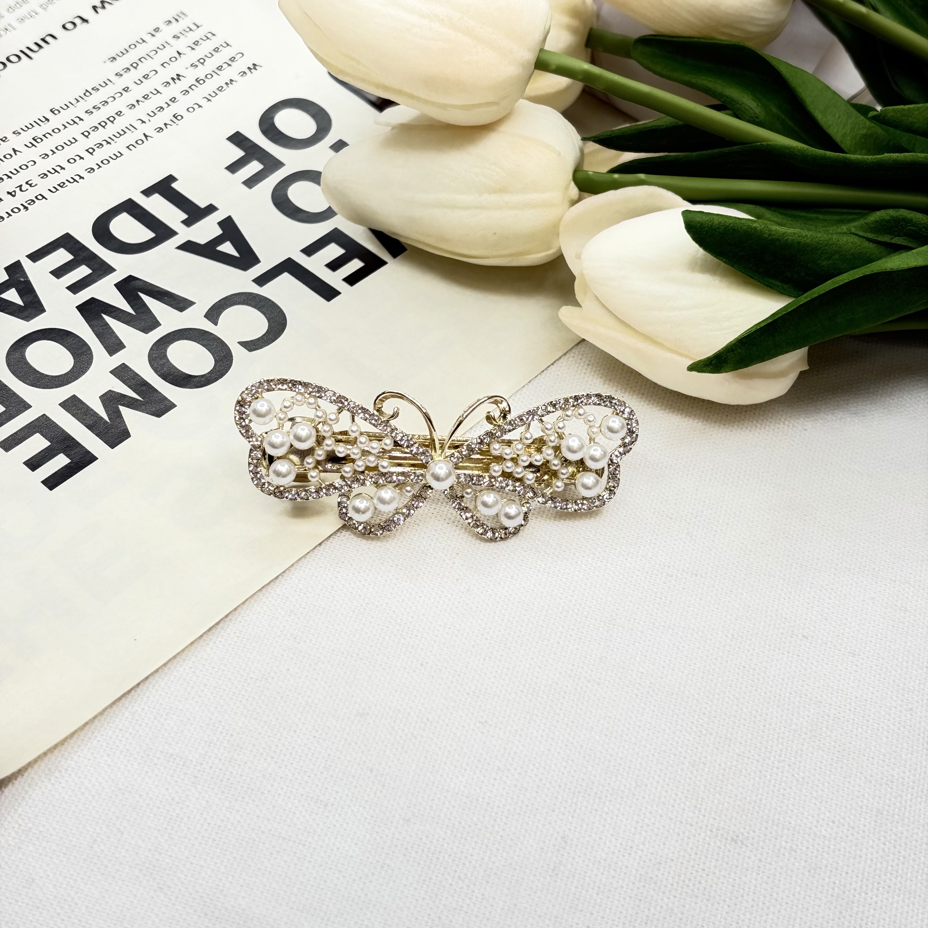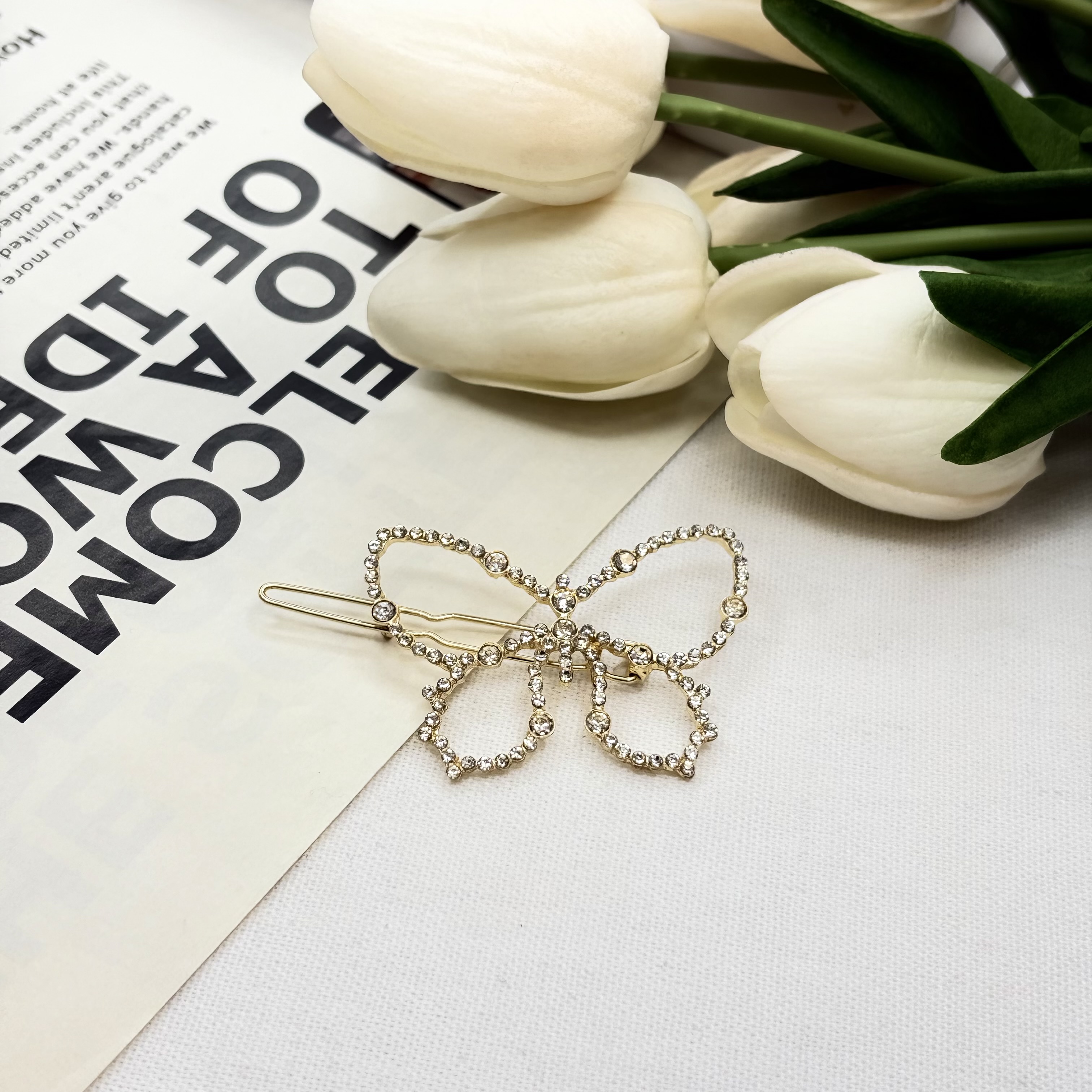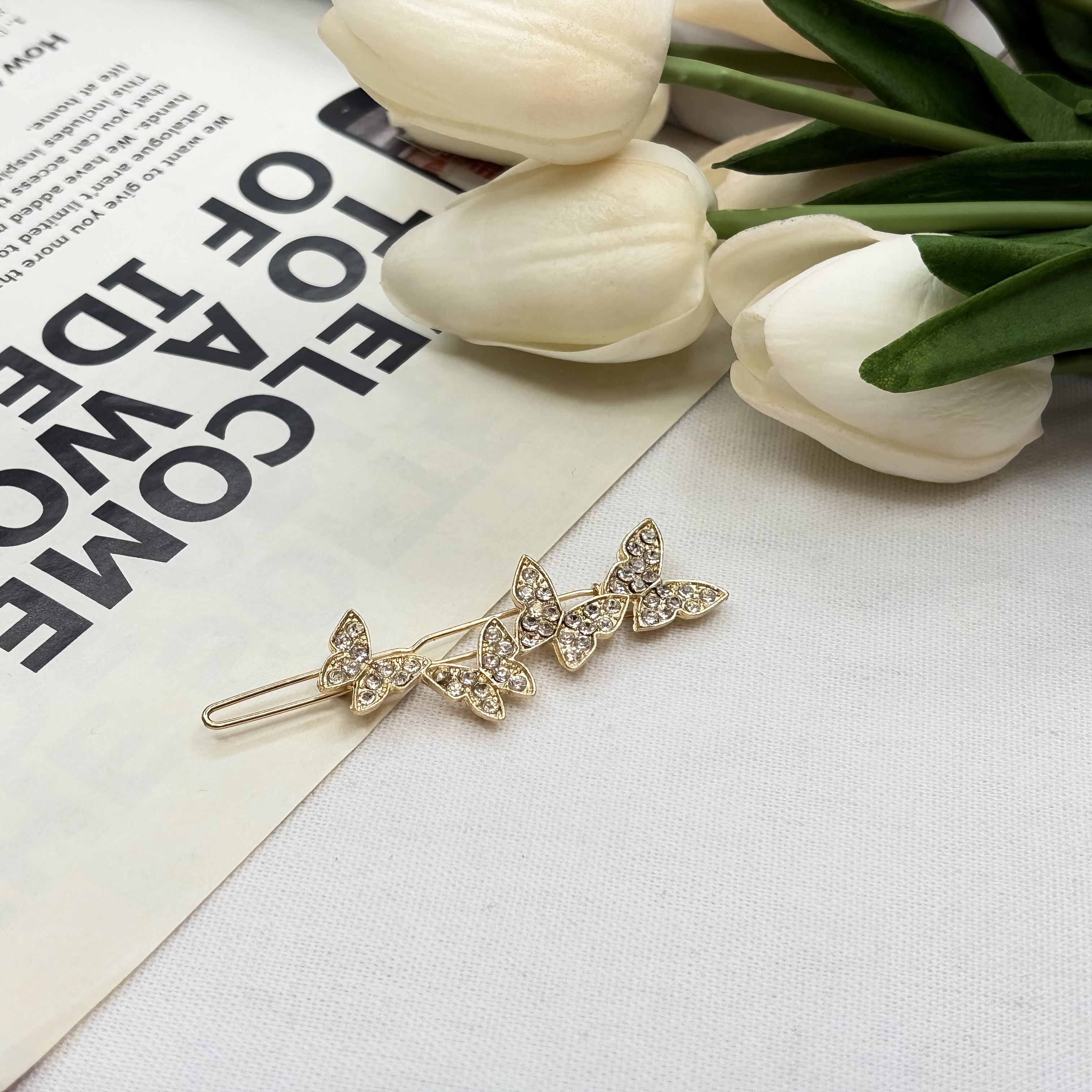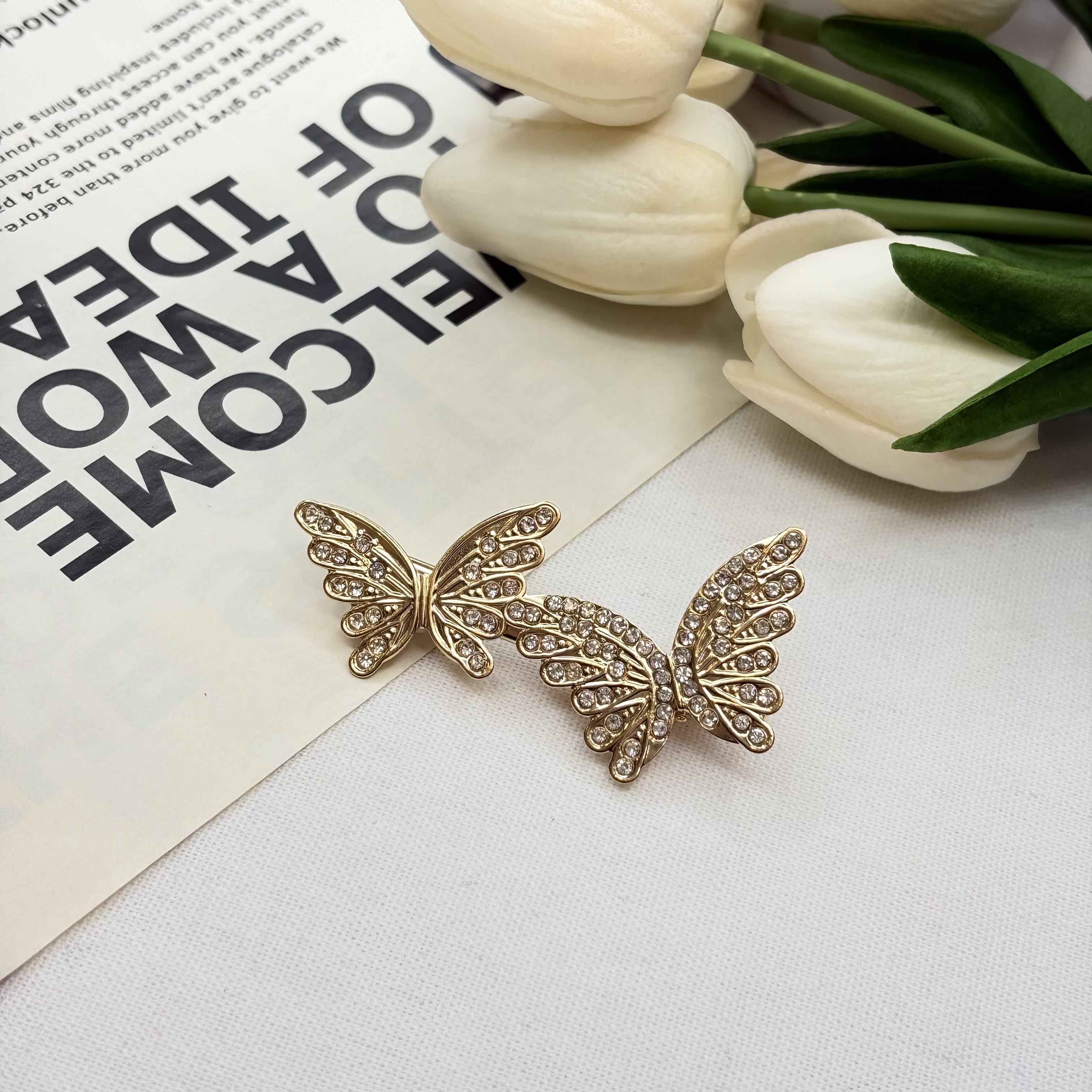 کلیپس فلزی فرانسوی فول نگین پروانه رنگ ثابت مناسب نیمه‌باز و‌کامل جمع کردن مو