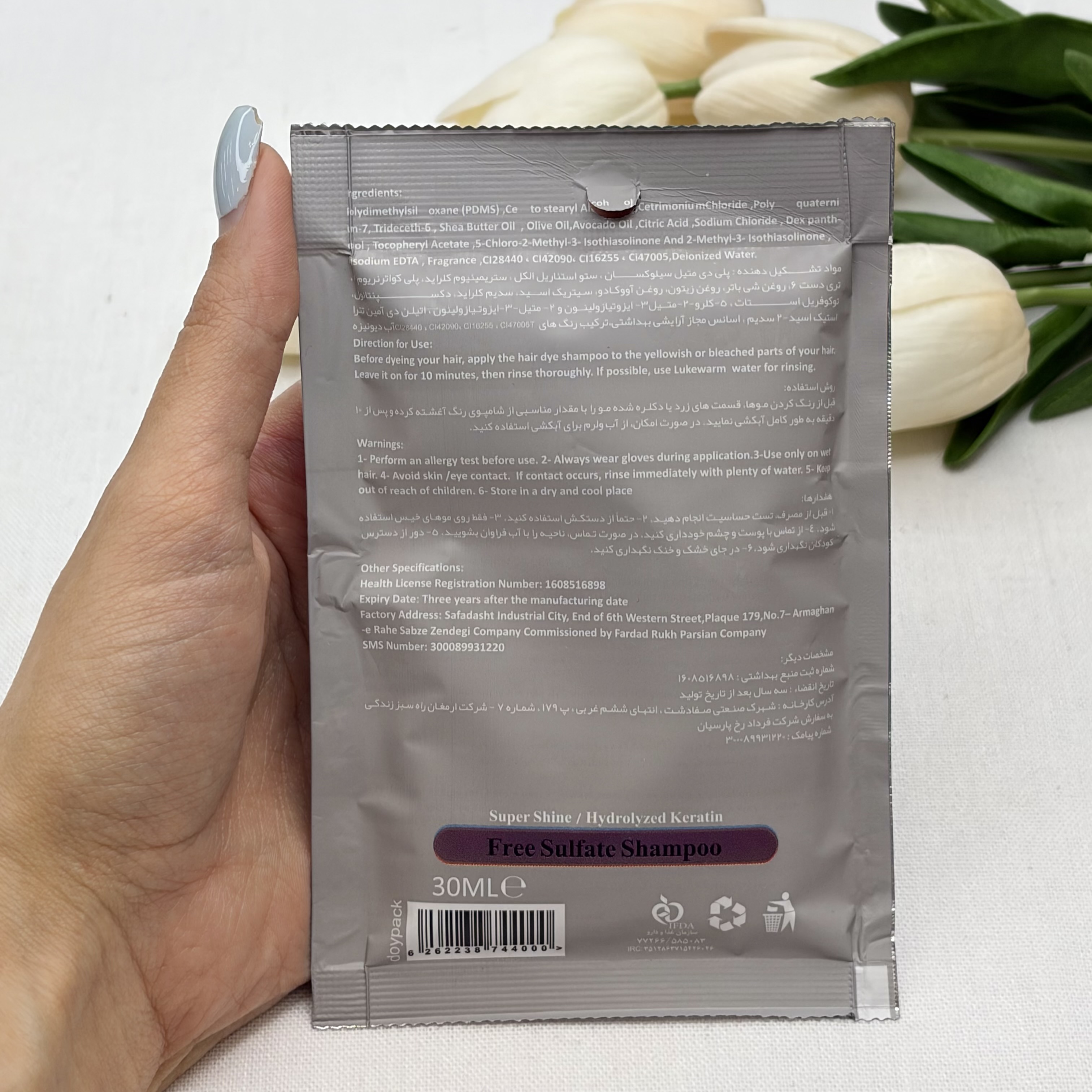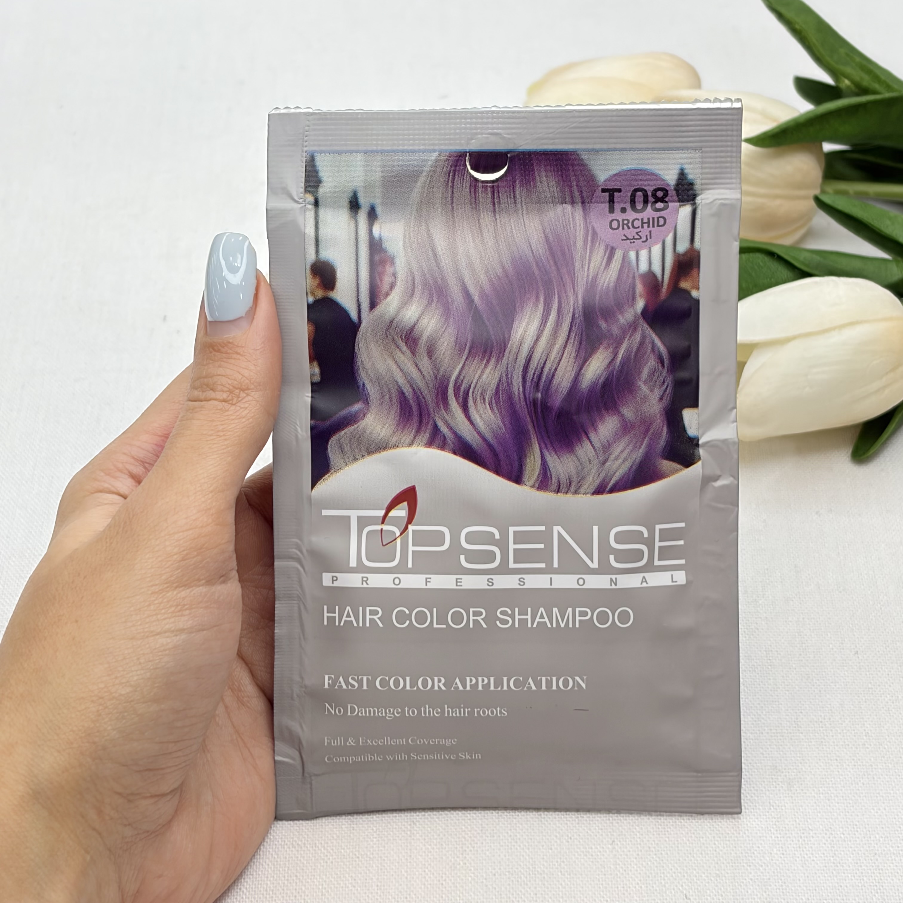 شامپو رنگ مو‌ ژله ای ساشه ای رنگ ارکید شماره T.08 برند تاپ سنس TOP SENSE حجم ۳۰میل