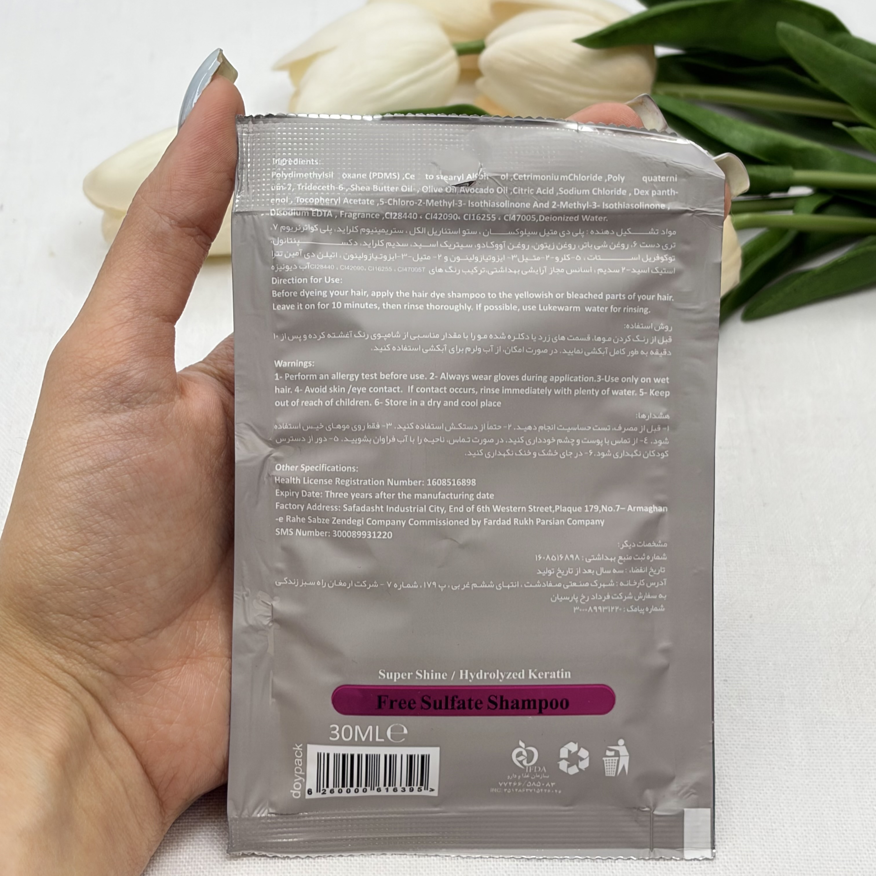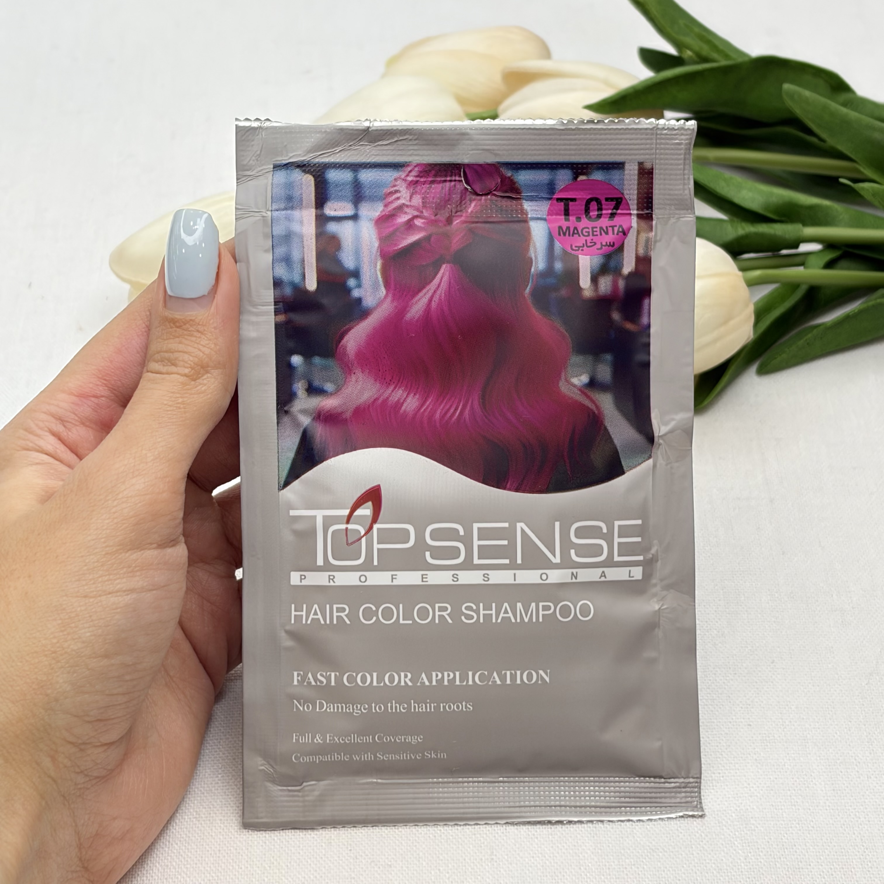 شامپو رنگ مو‌ ژله ای ساشه ای رنگ سرخابی شماره T.07 برند تاپ سنس TOP SENSE حجم ۳۰میل