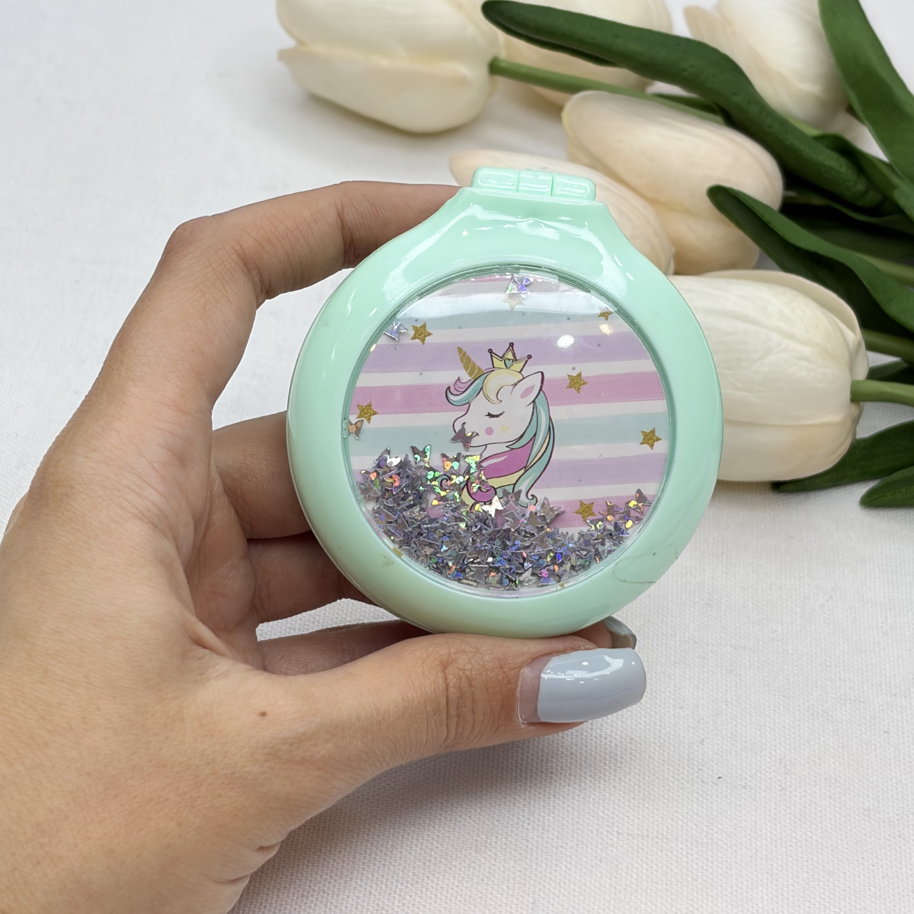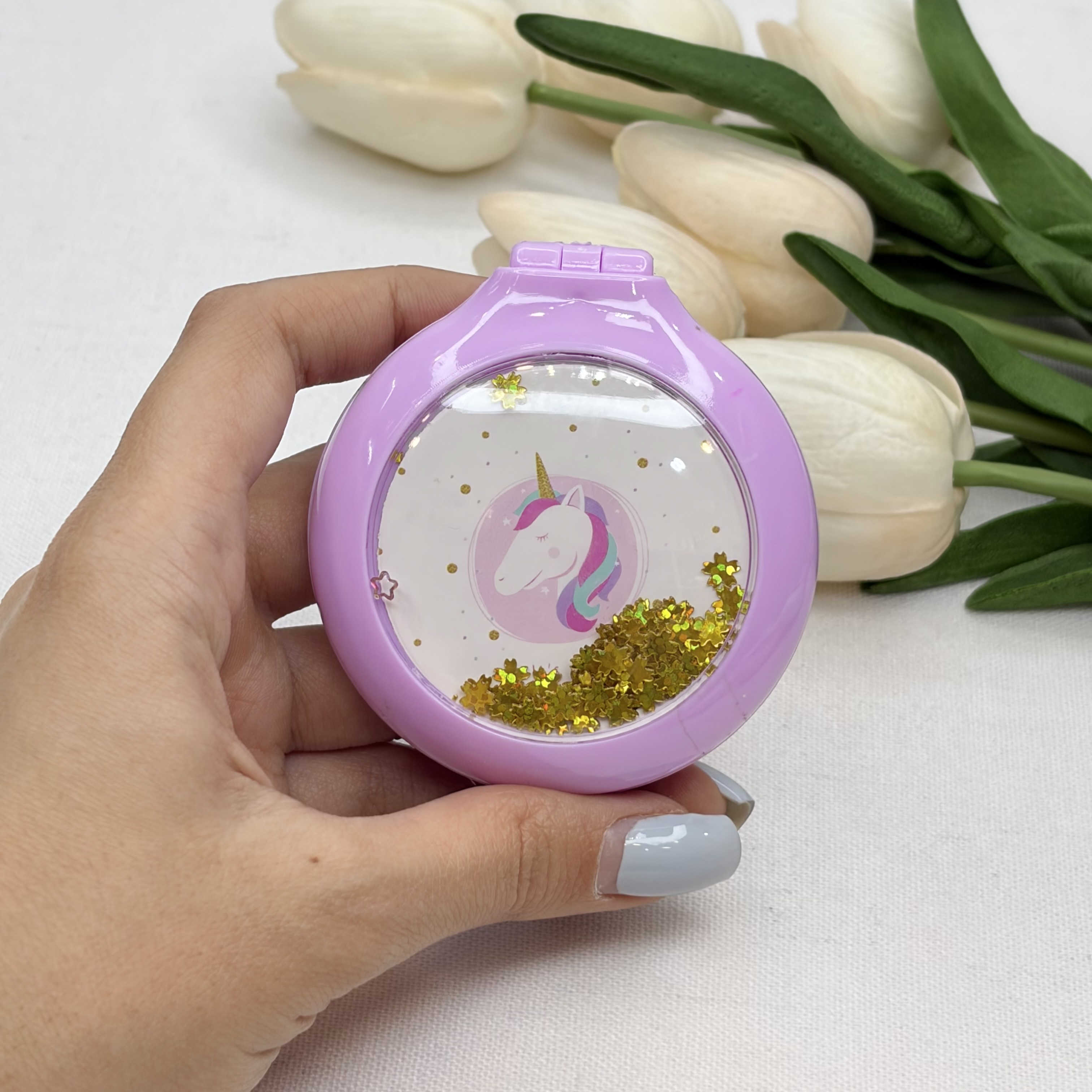 آینه و برس جیبی طرح تک شاخ (یونیکورن) ارسال رندوم