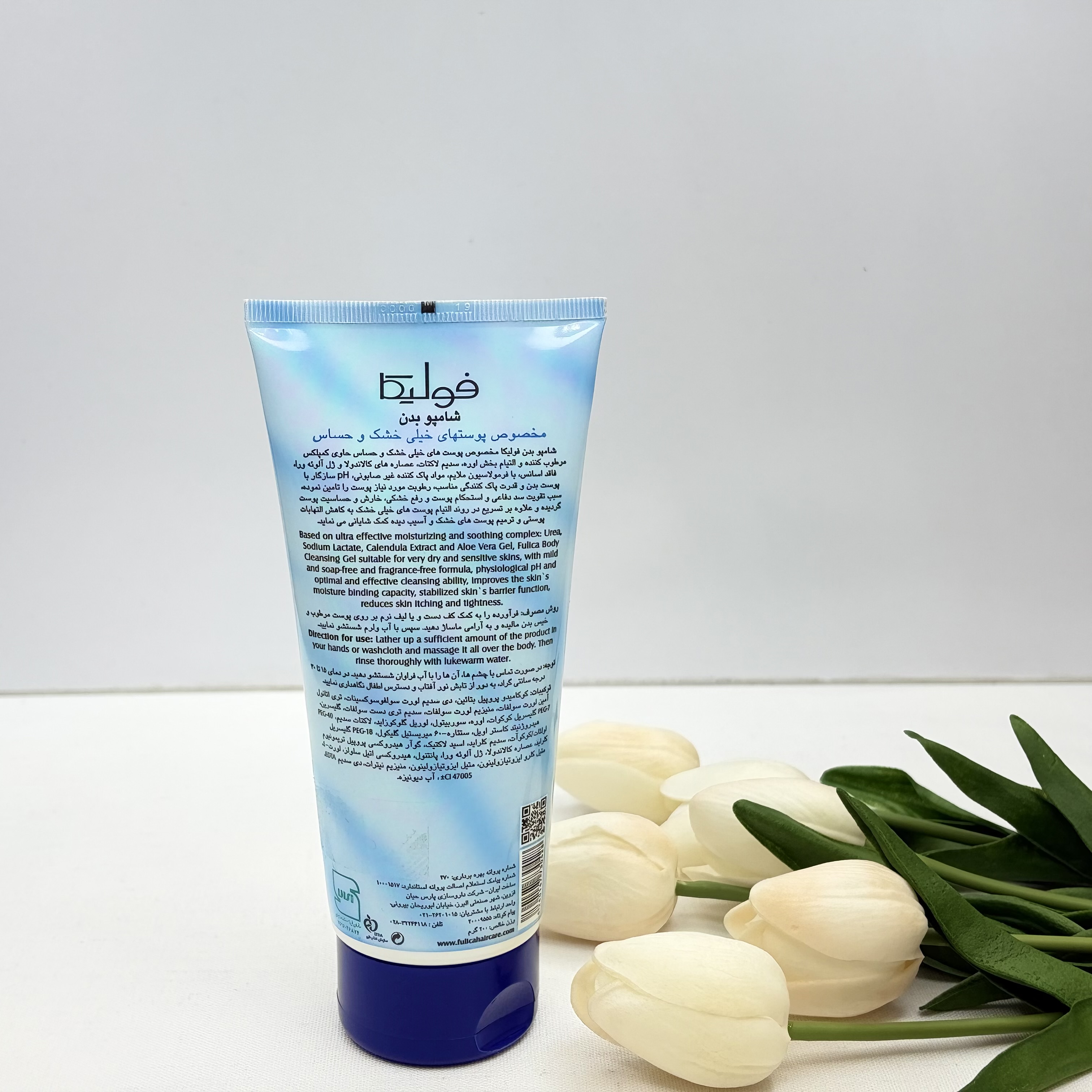 شامپو بدن تیوپی آبی فولیکا مخصوص پوست های خیلی خشک و حساس 200 میل