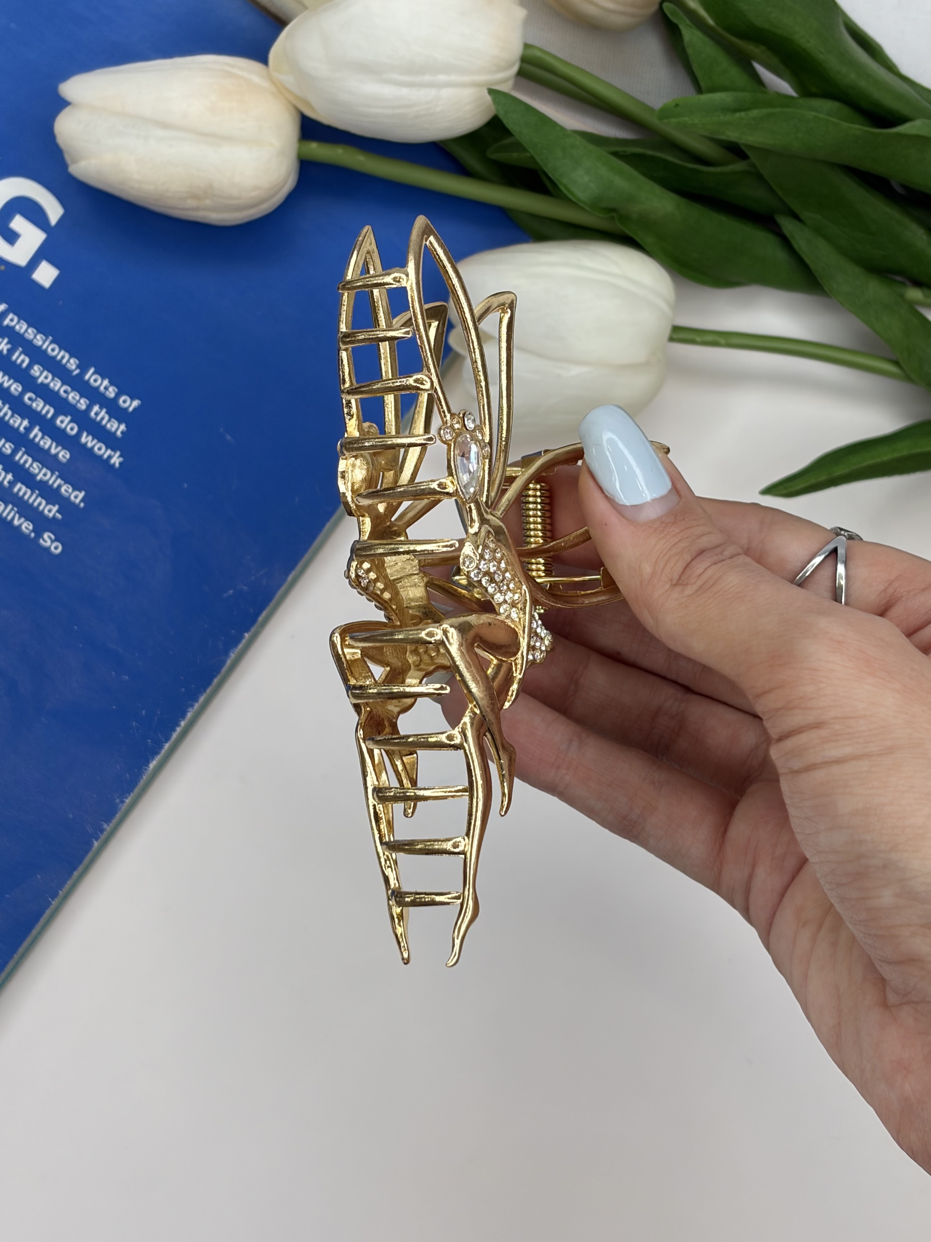کلیپس فلزی نگین دار طرح دختر شاپرکی سایز بزرگ باکیفیت۱۱/۵cm