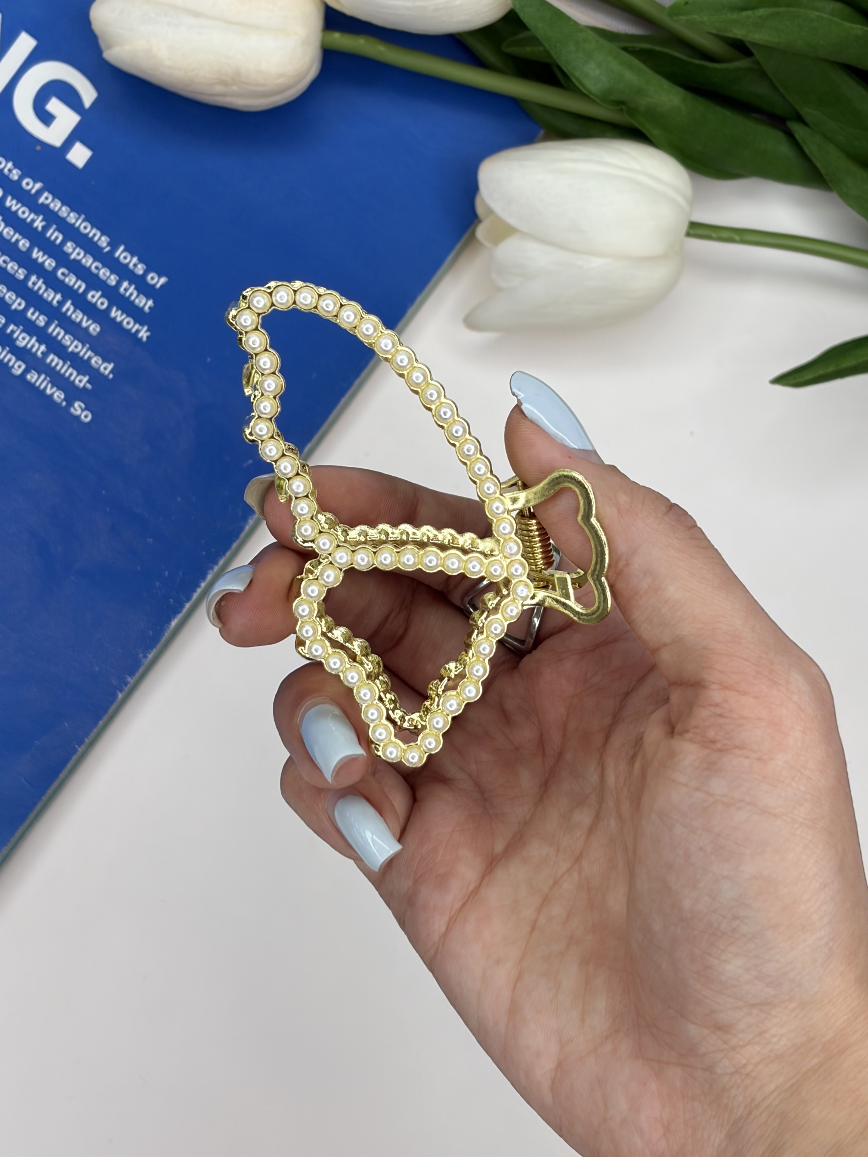 کلیپس فلزی طرح پروانه نیمه فول مروارید8cm