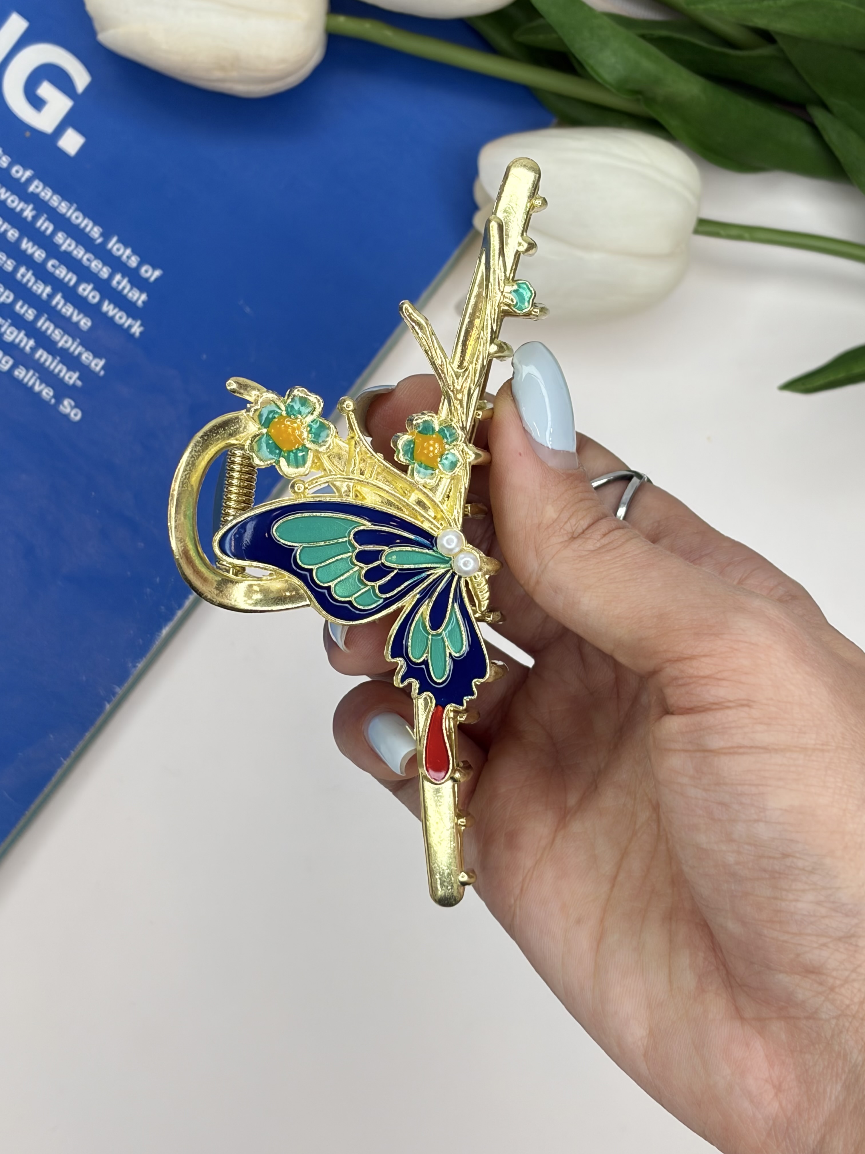 کلیپس فلزی پروانه میناکاری سایز بزرگ11/5cm