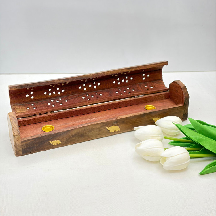 جاعودی صندوقی چوبی چوب وارداتی دست ساز مناسب عود شاخه ای مخروطی دارای جای نگهداری عود استفاده با درب بسته وباز