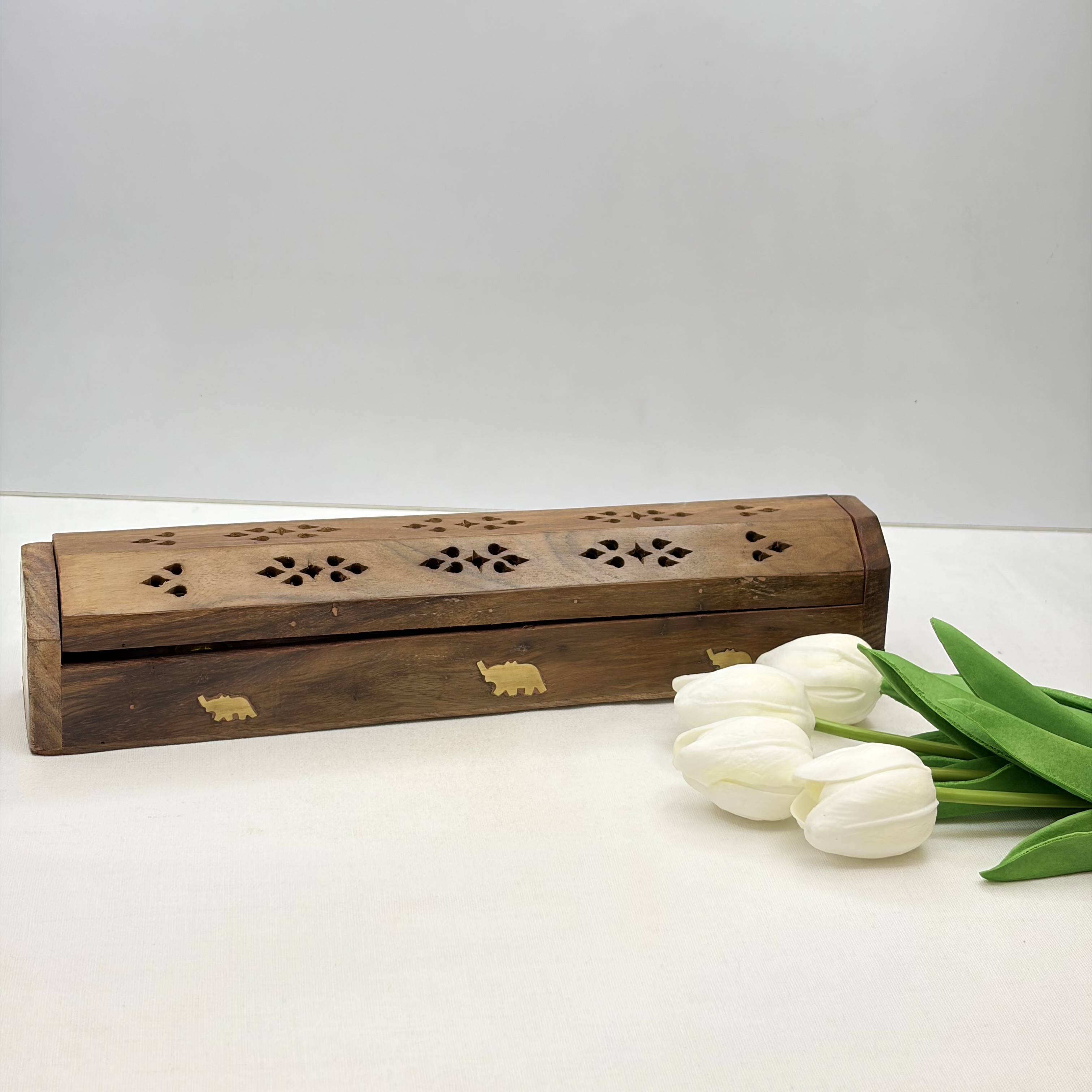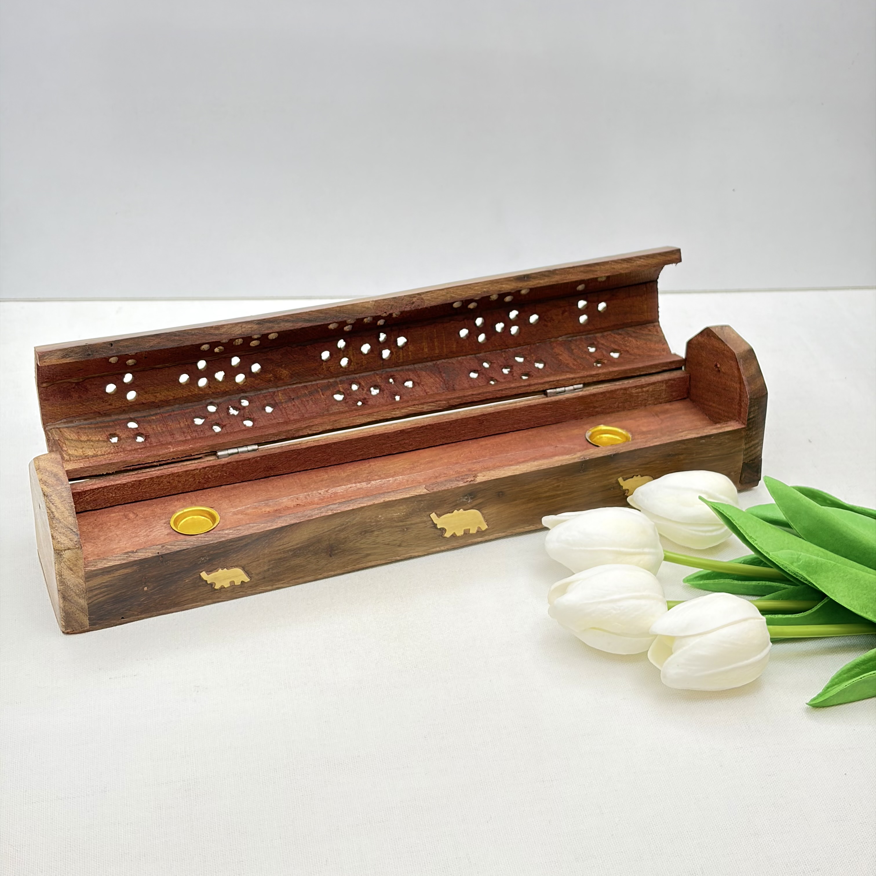 جاعودی صندوقی چوبی چوب وارداتی دست ساز مناسب عود شاخه ای مخروطی دارای جای نگهداری عود استفاده با درب بسته وباز