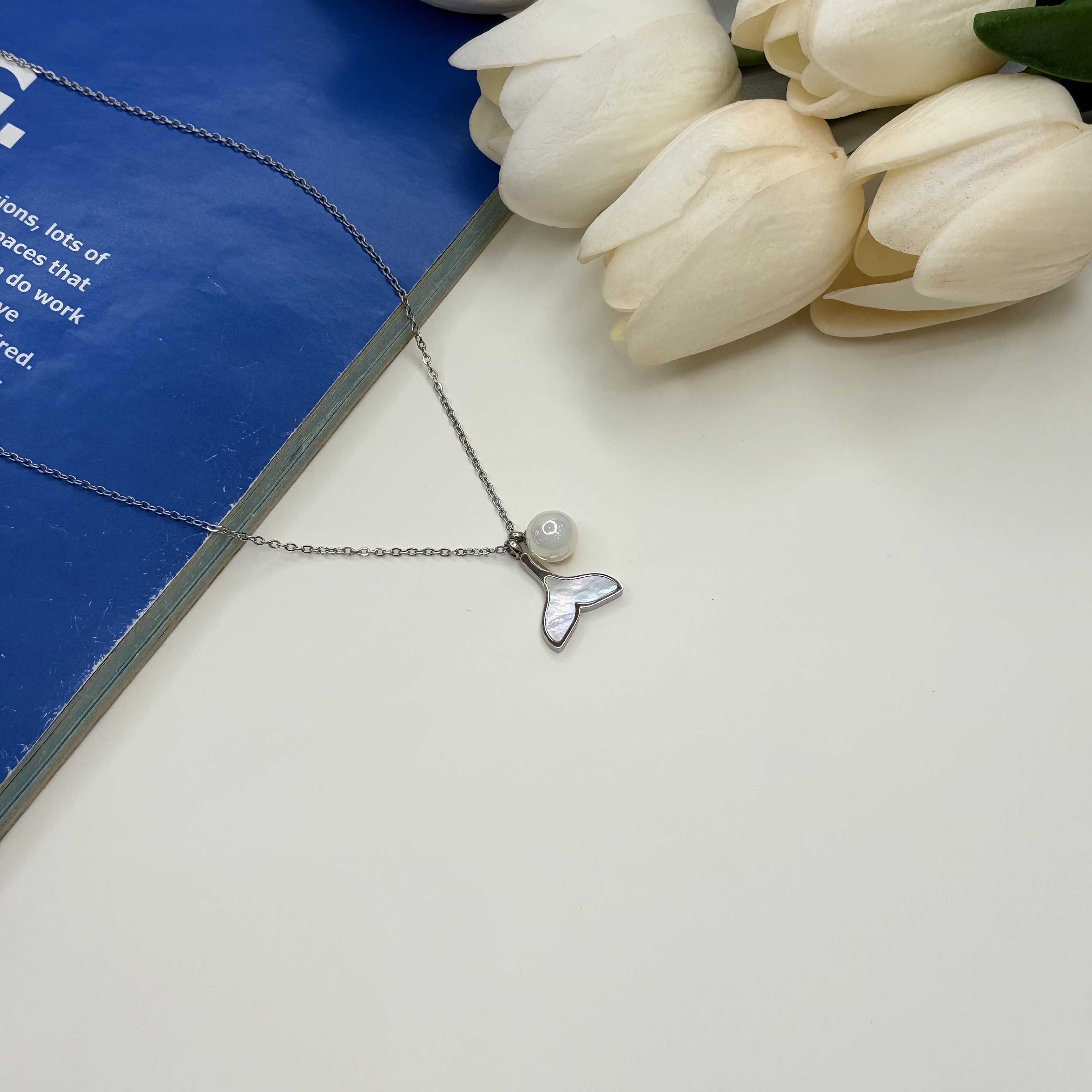 گردنبند‌دم وال و مروارید رنگ نقره ای باکیفیت بالا