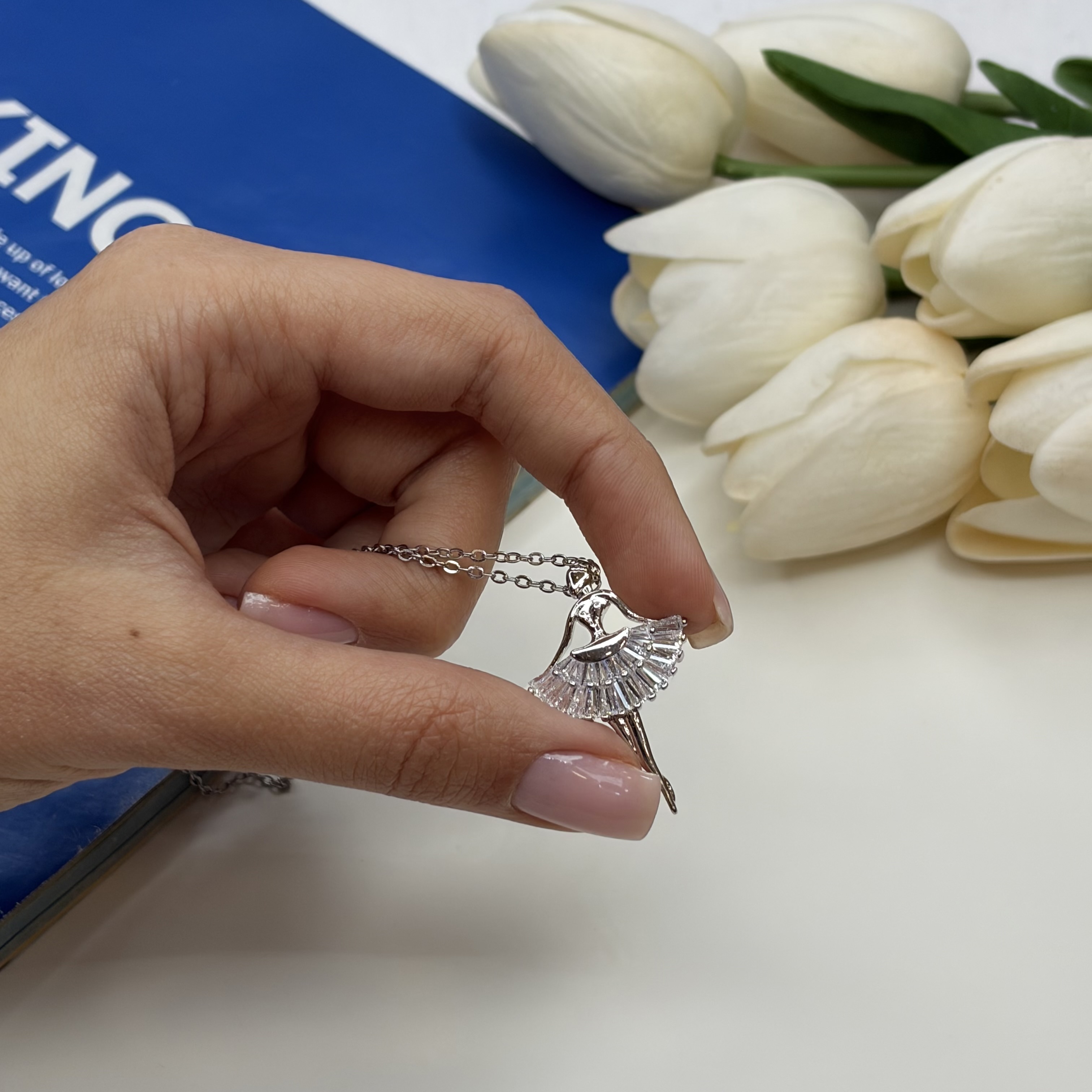 گردنبند طرح رقص باله کریستال نقره ای استیل رنگ ثابت