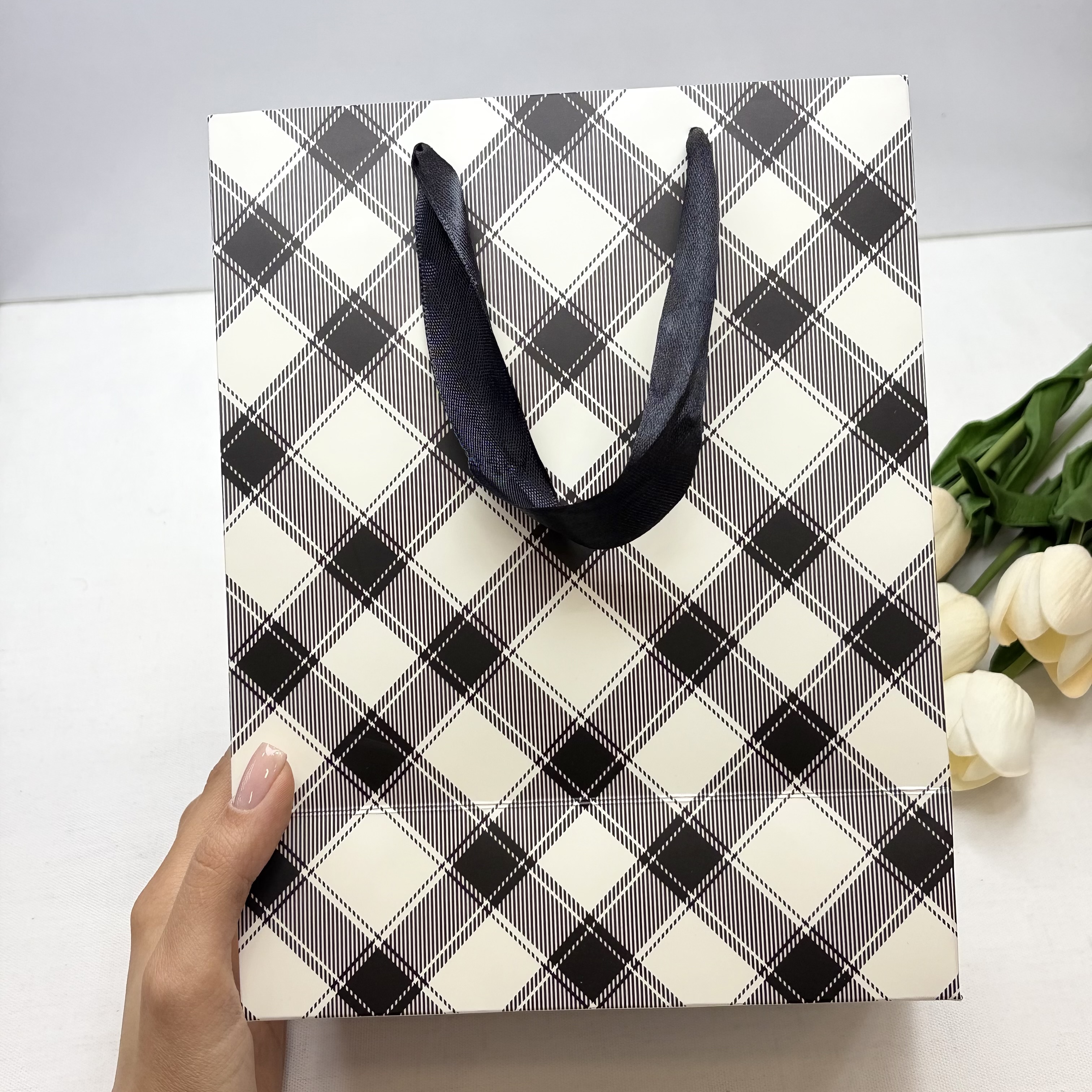 بگ شاپ بگ کادویی طرح چهارخونه سفید مشکی