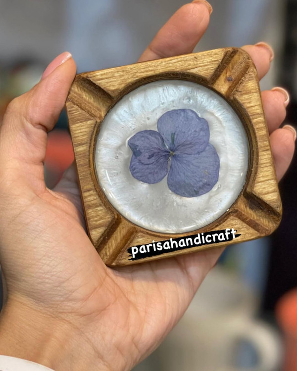 زیر سیگاری چوبی گل طبیعی دست ساز
