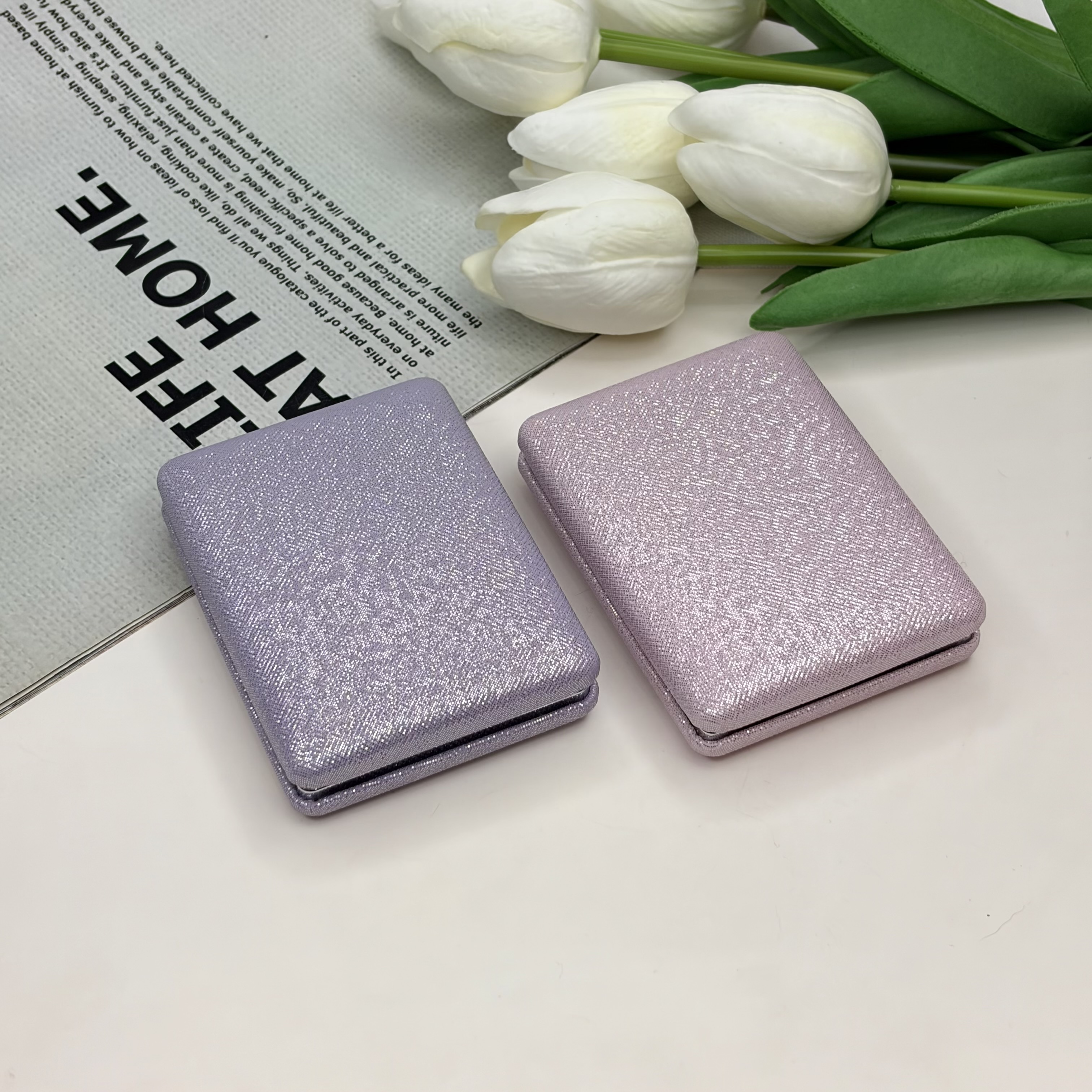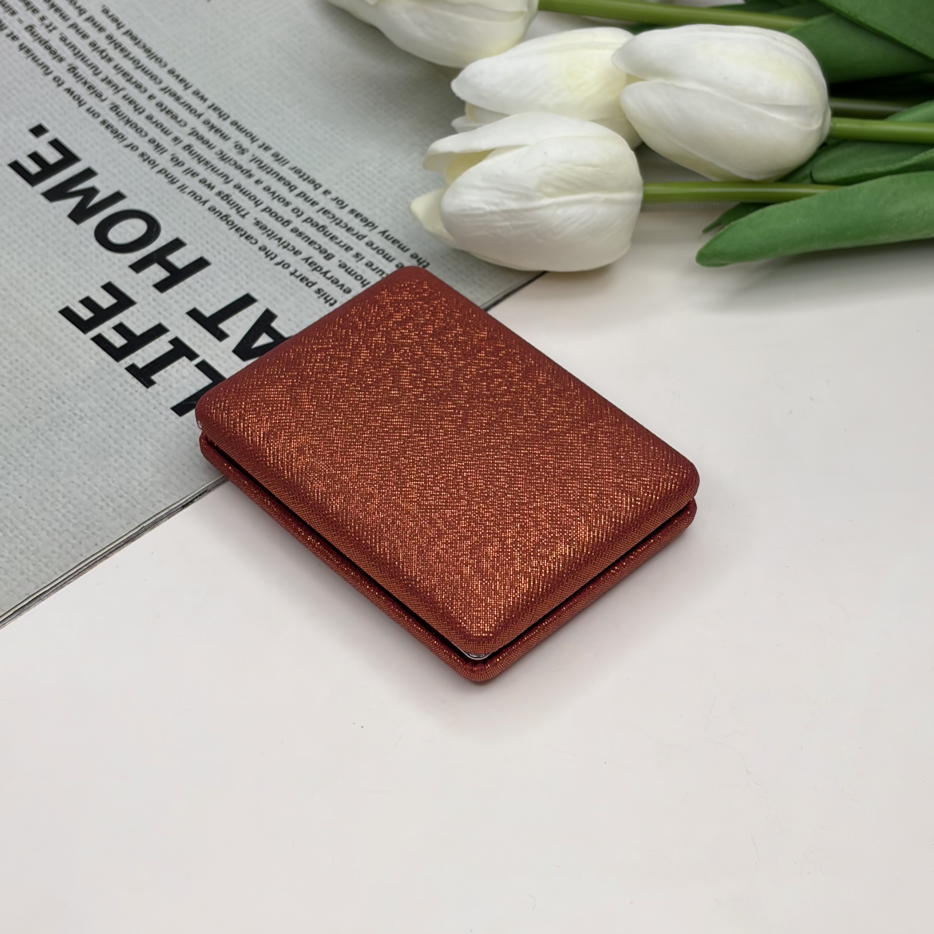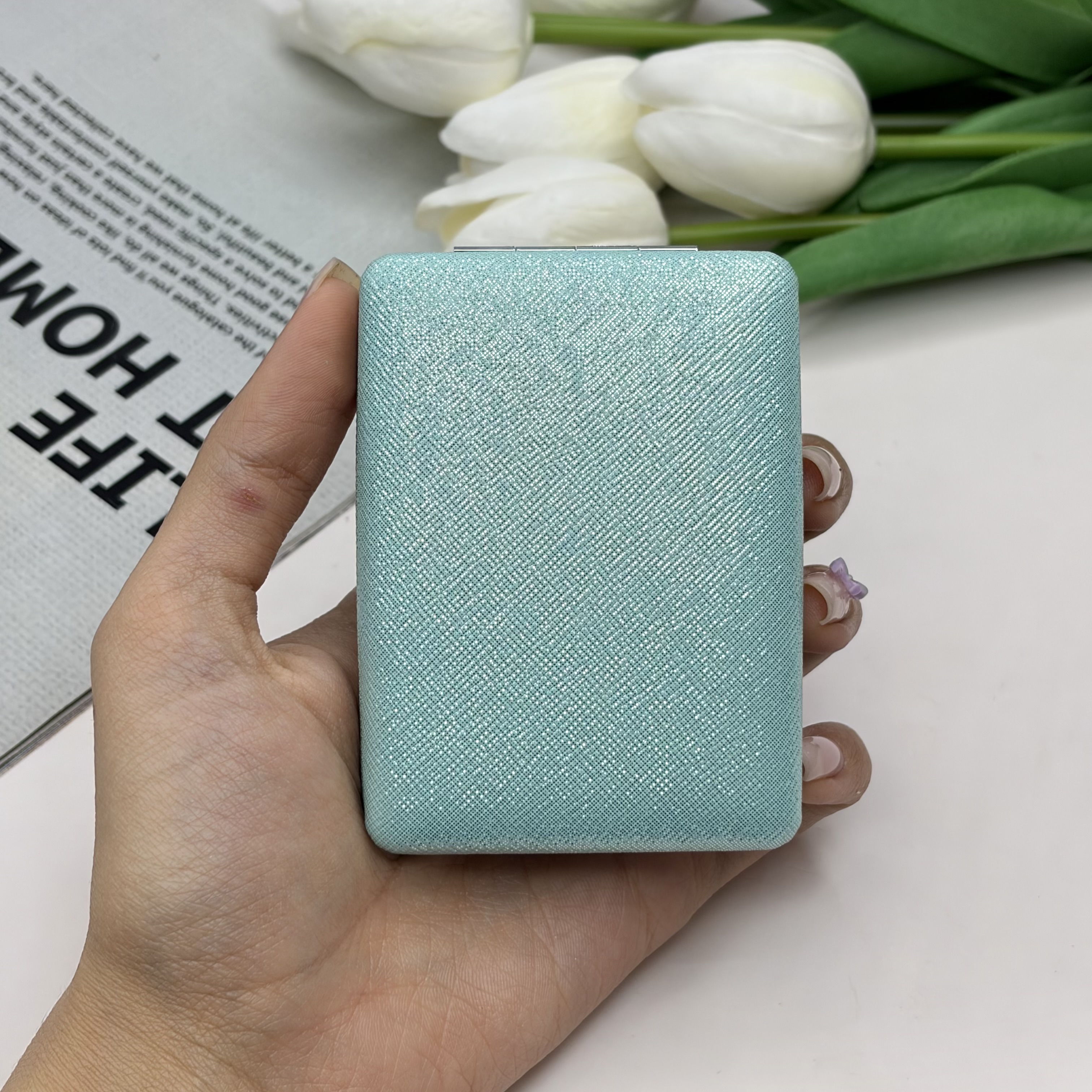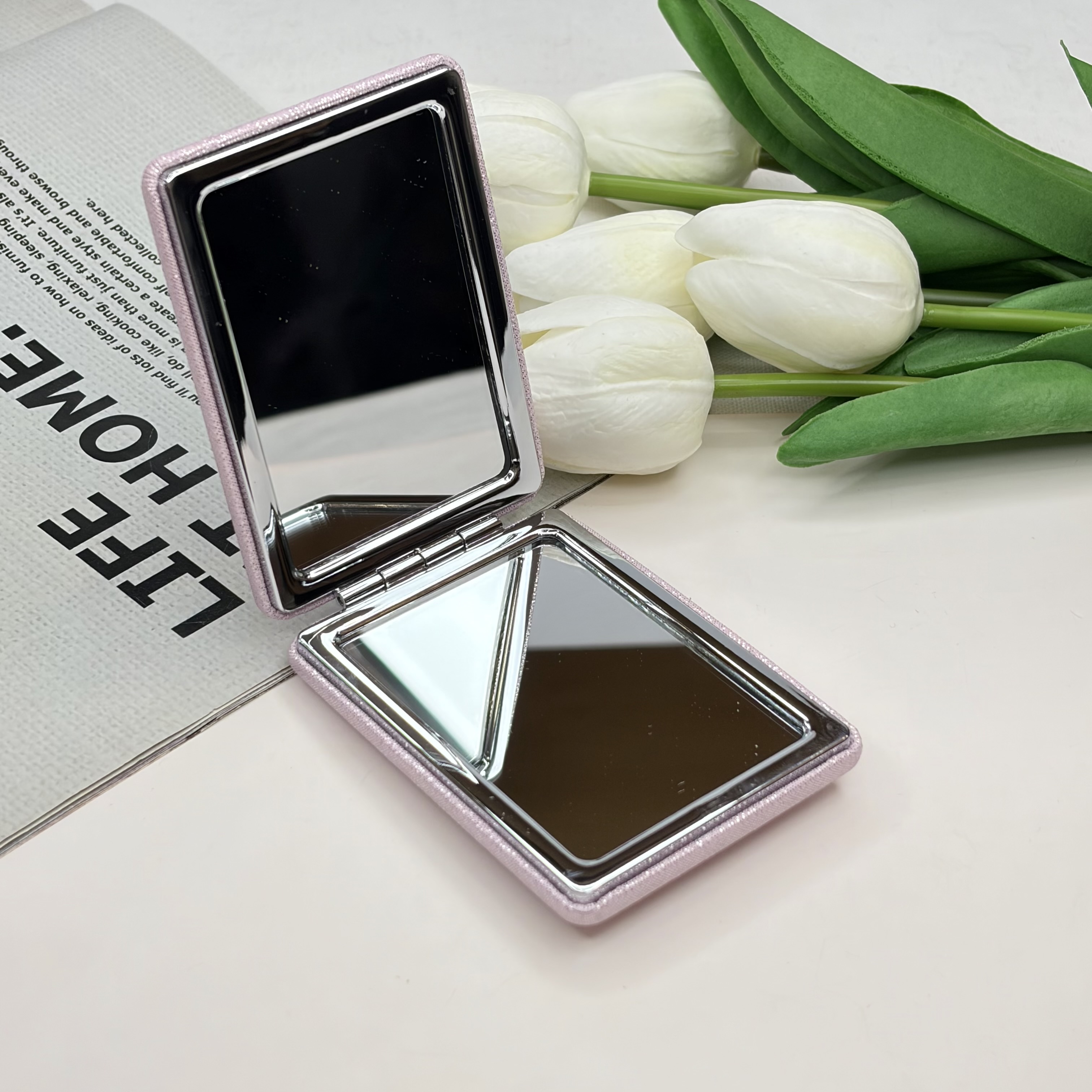 آینه جیبی دوطرفه مدل شاین دار مستطیل چرم 8.5cm در 6cm