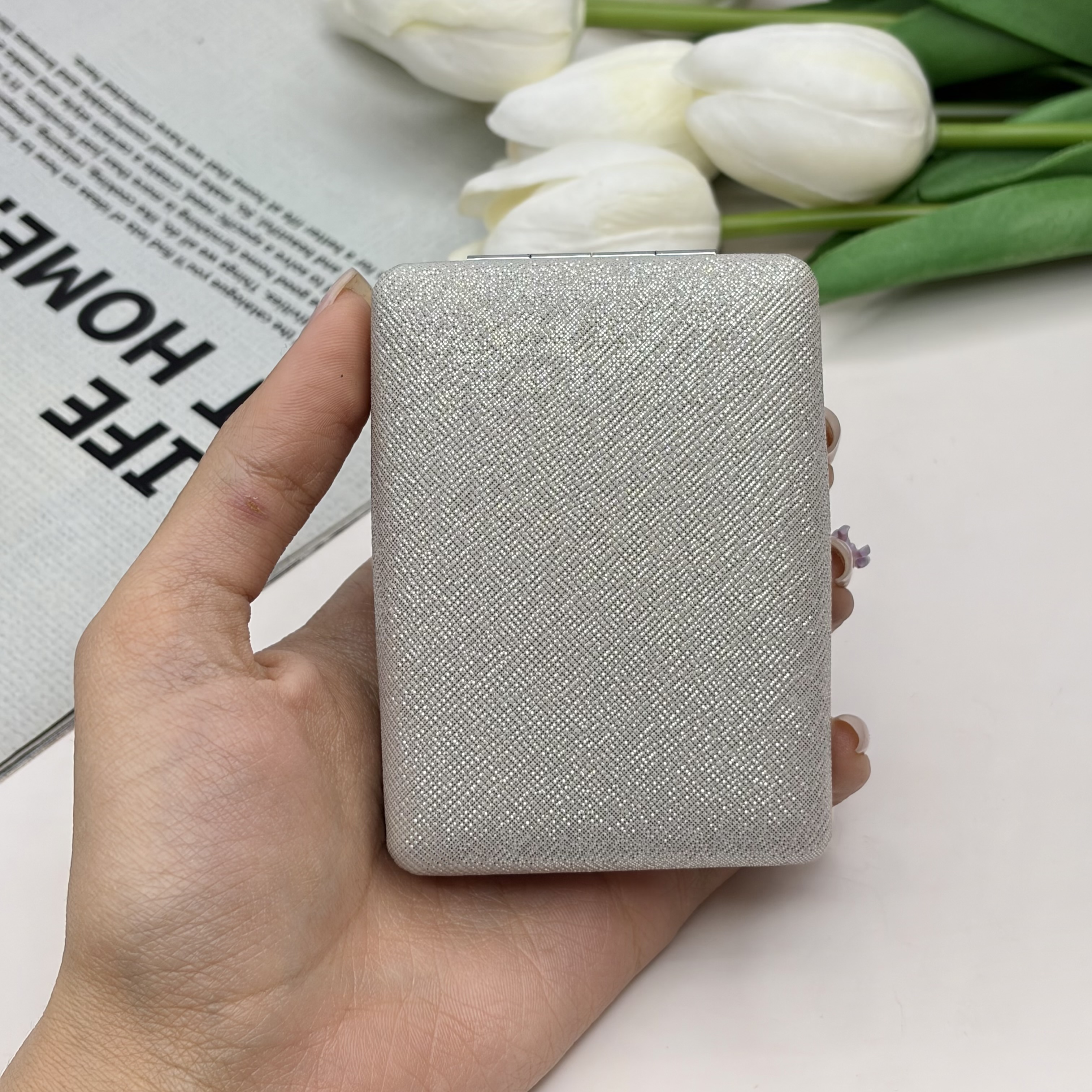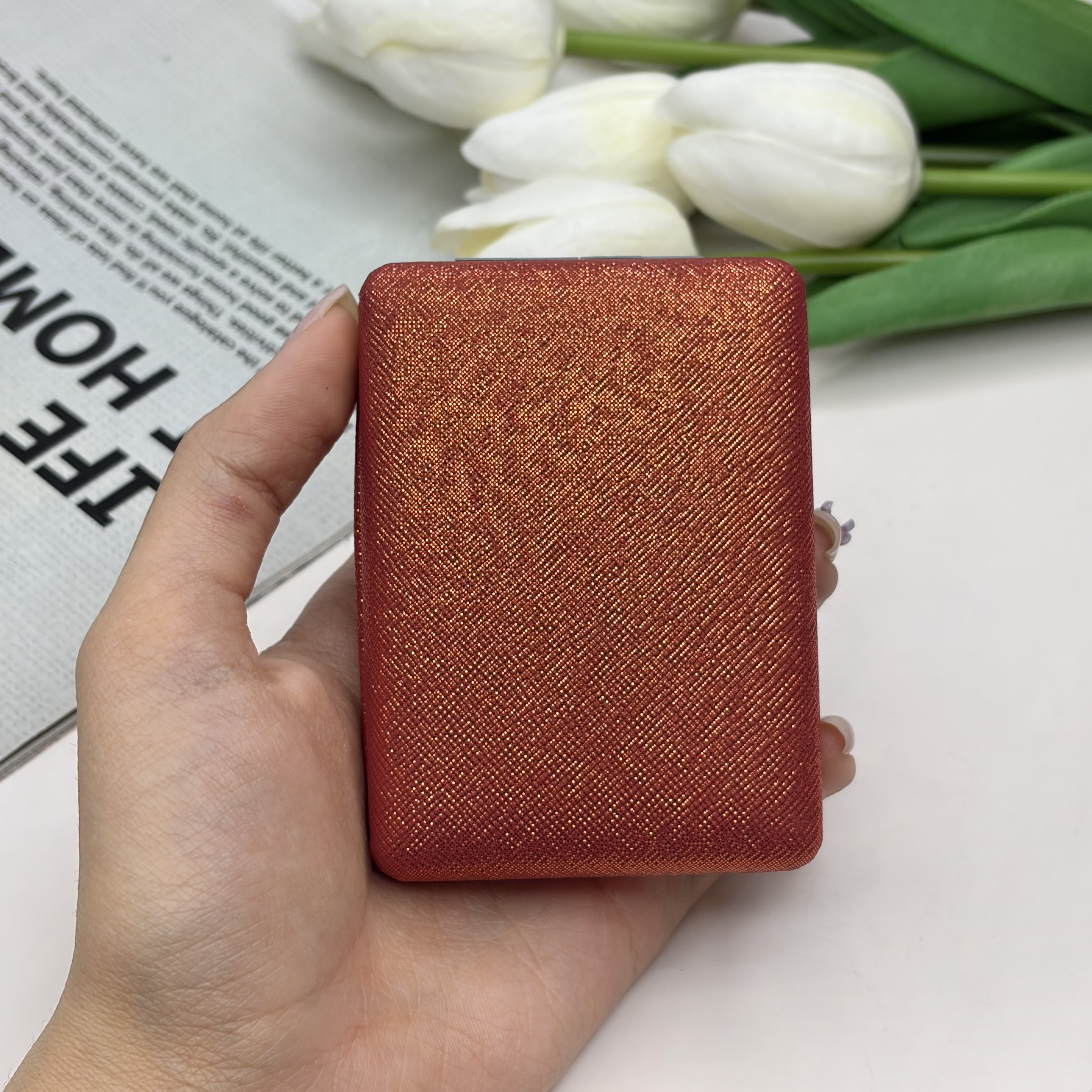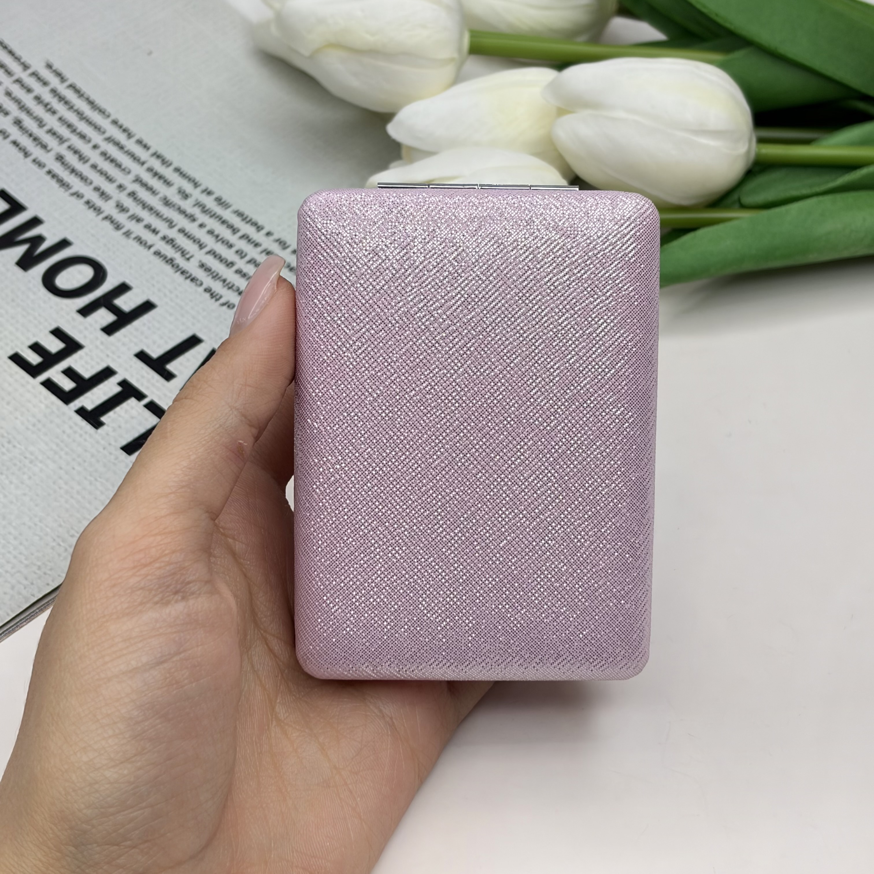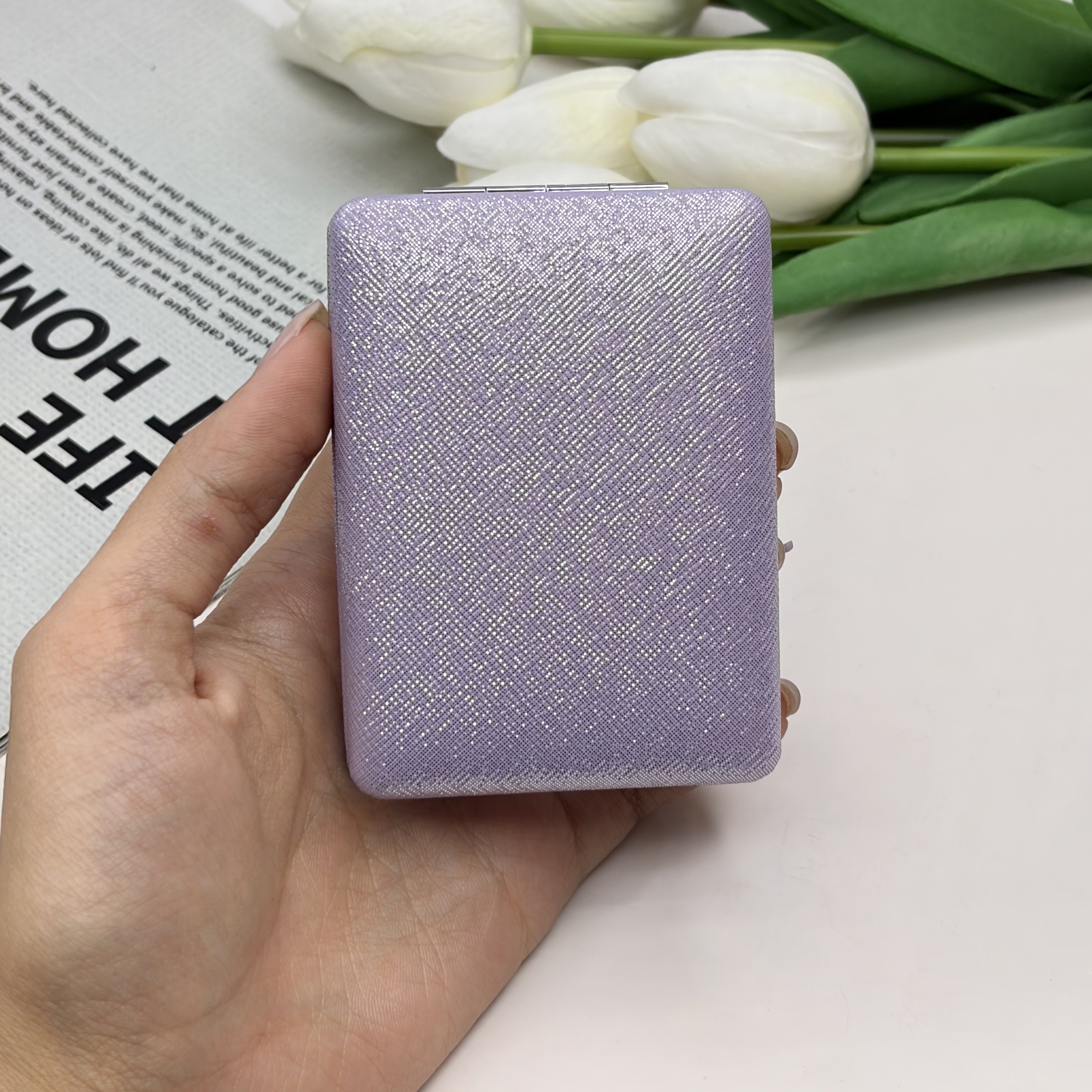 آینه جیبی دوطرفه مدل شاین دار مستطیل چرم 8.5cm در 6cm