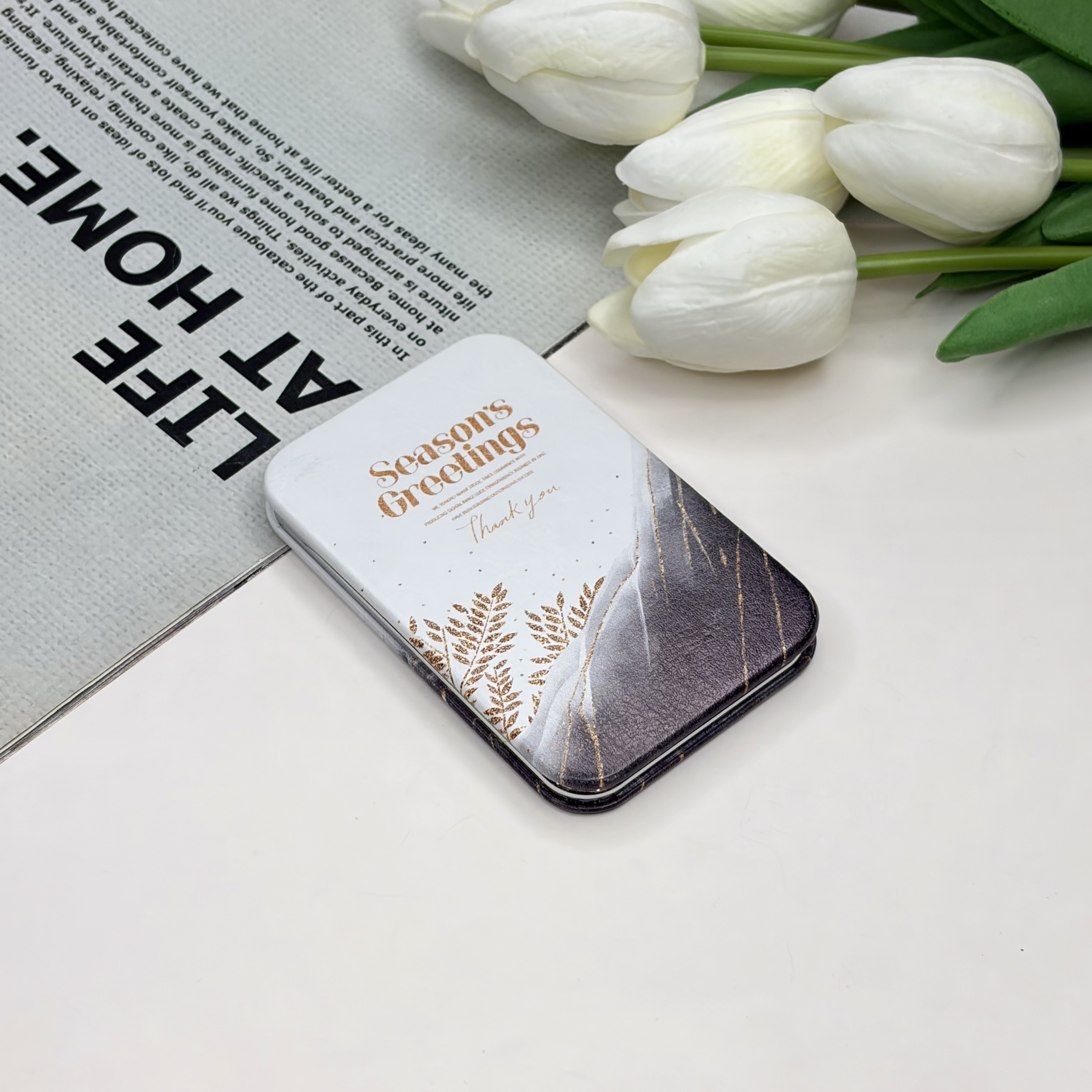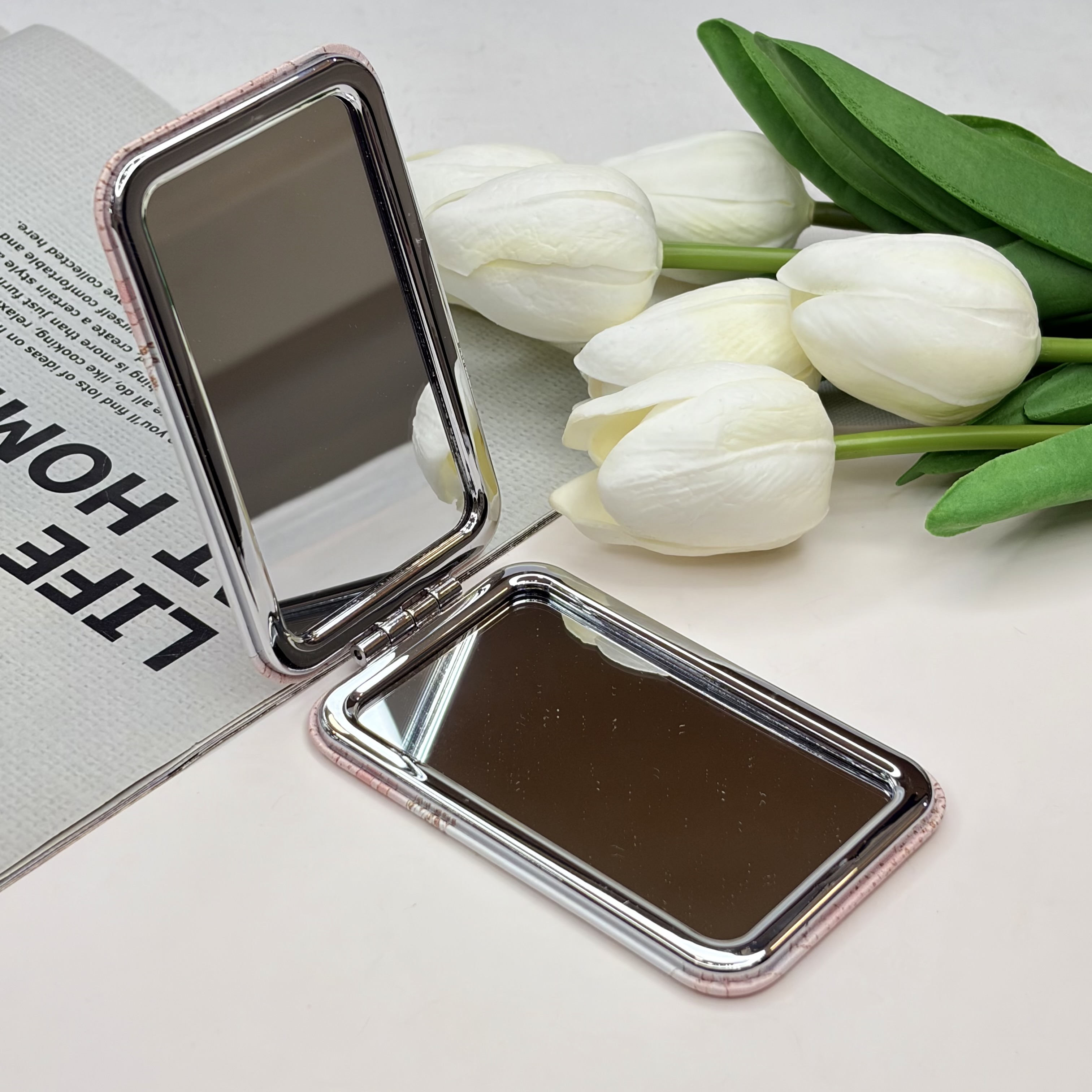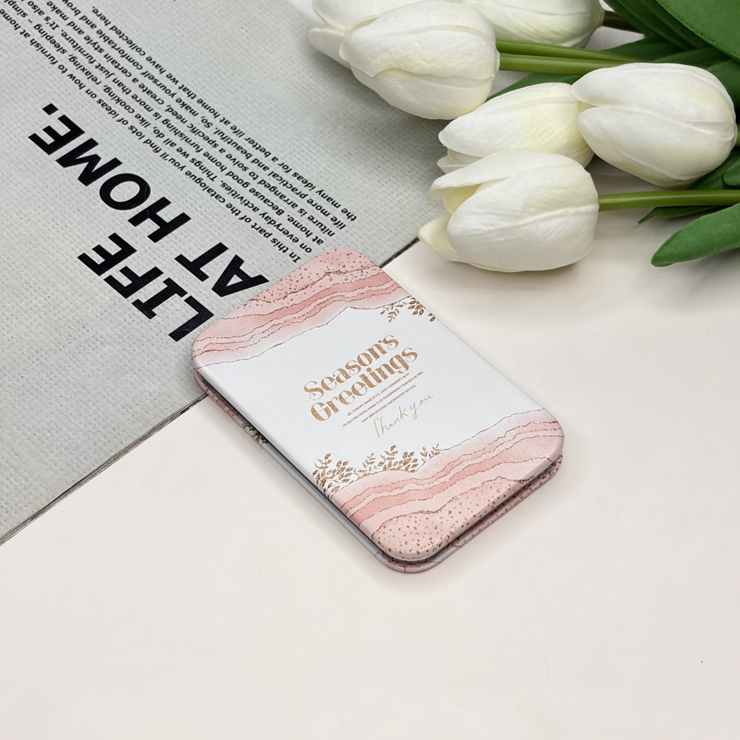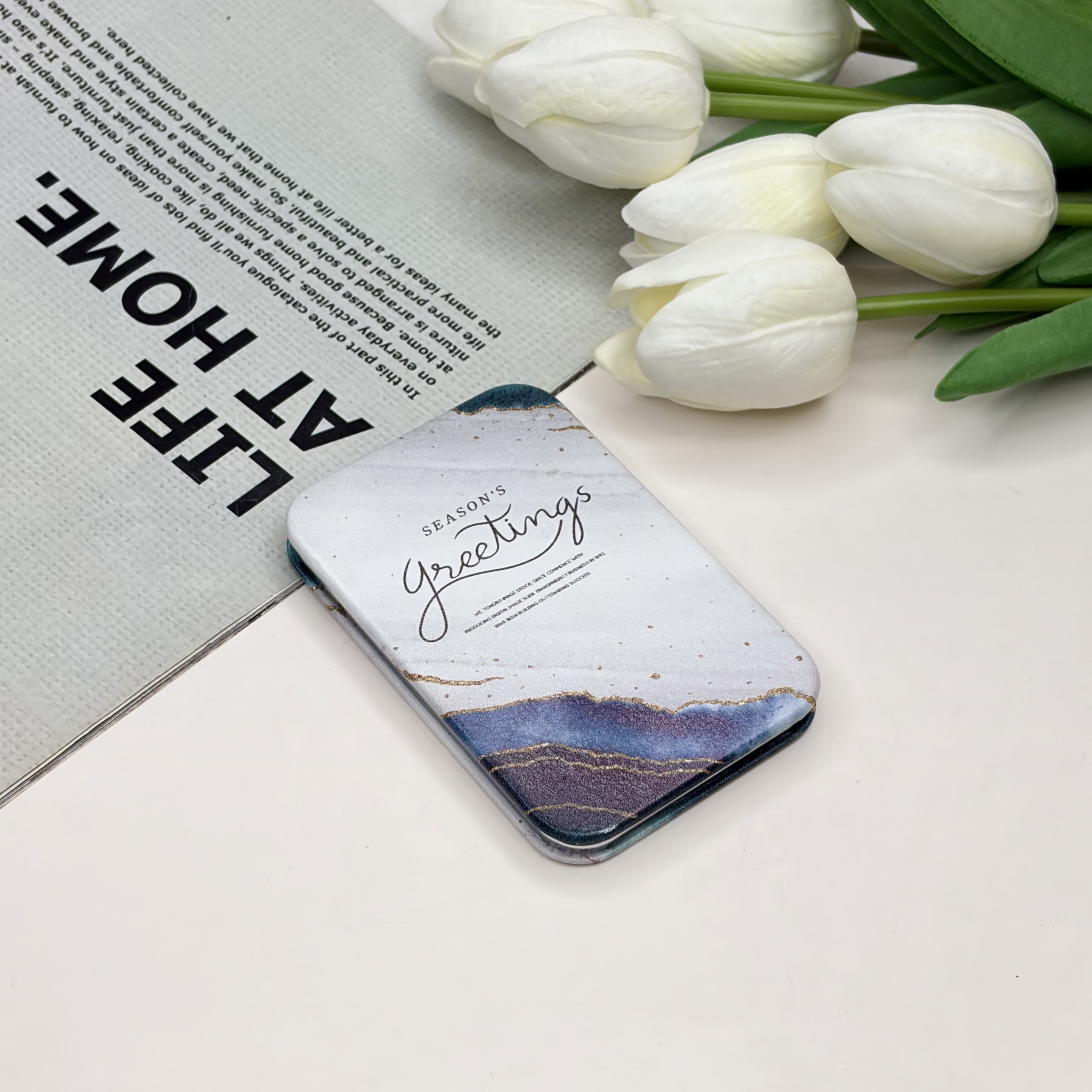 آینه جیبی دوطرفه طرح SeaSon Greeting مستطیل چرم 9.5cm در 6cm