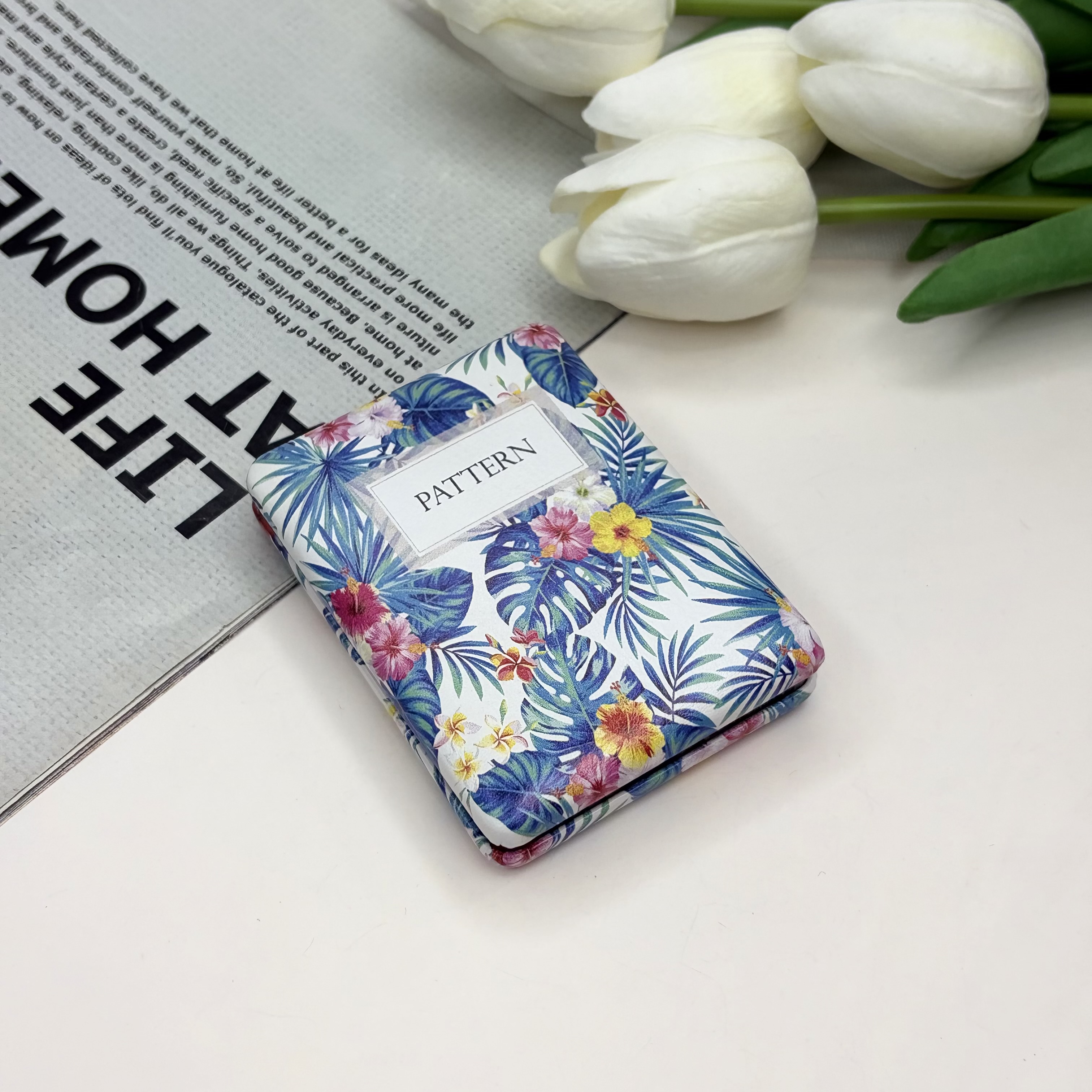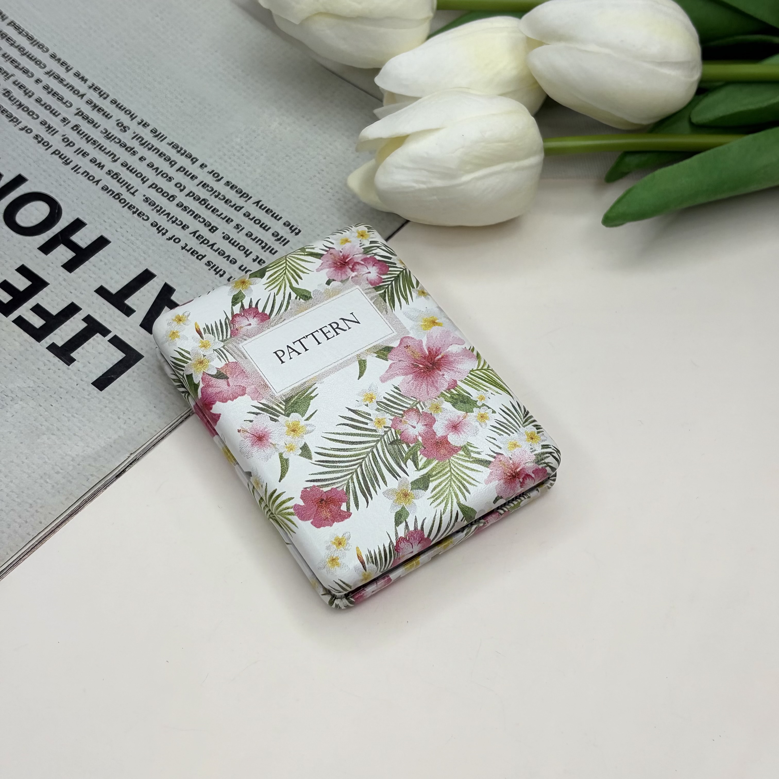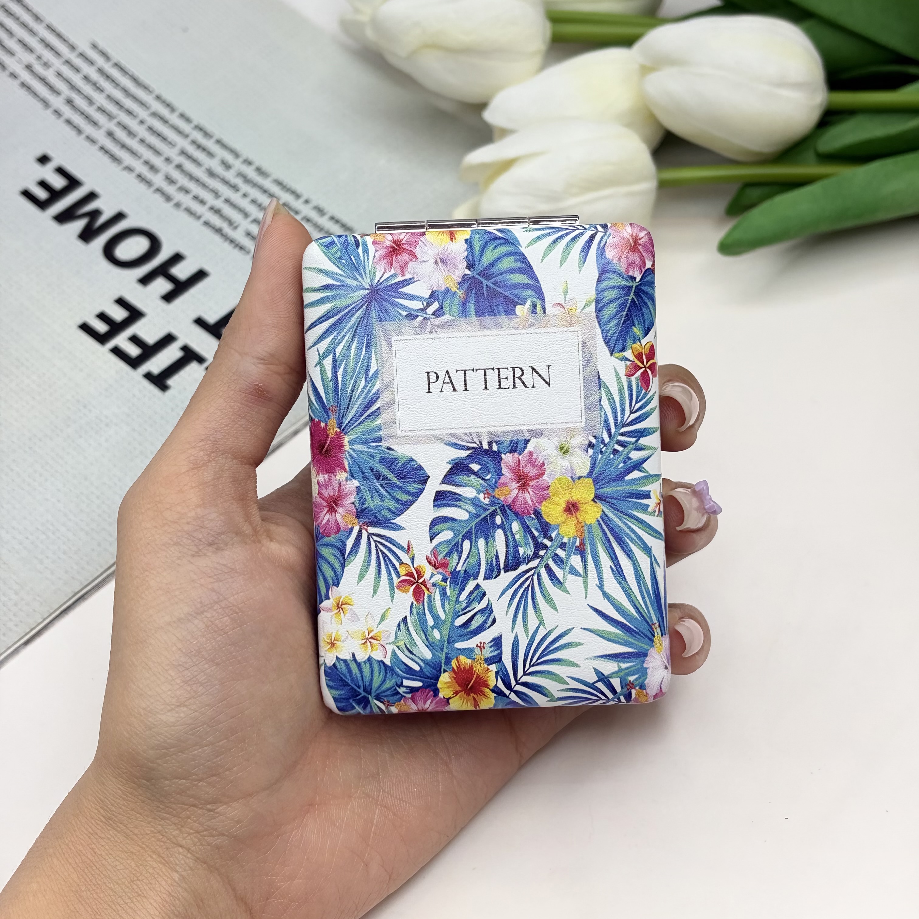 آینه جیبی دوطرفه طرح پترن گلدار مستطیل چرم8.5cm در 6cm