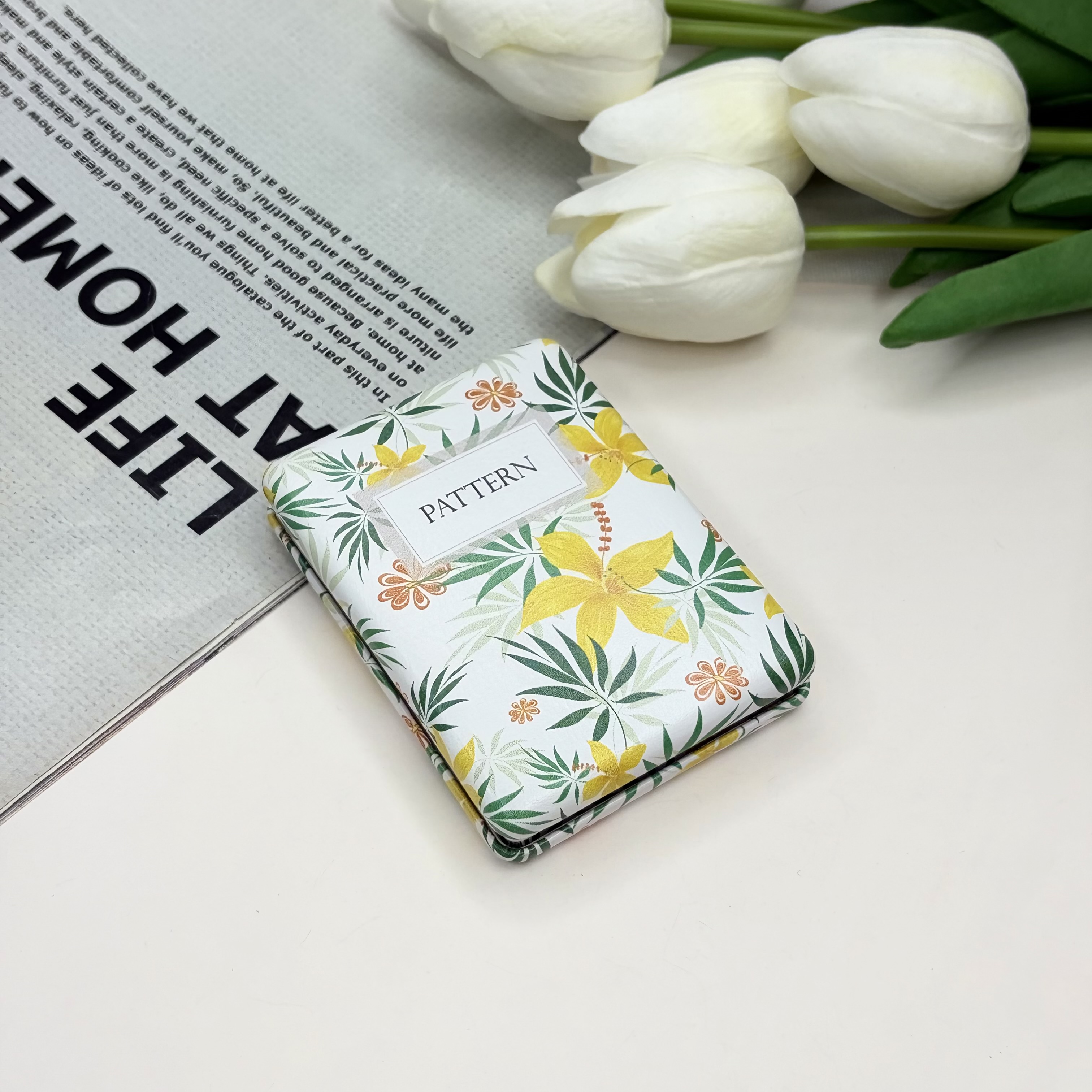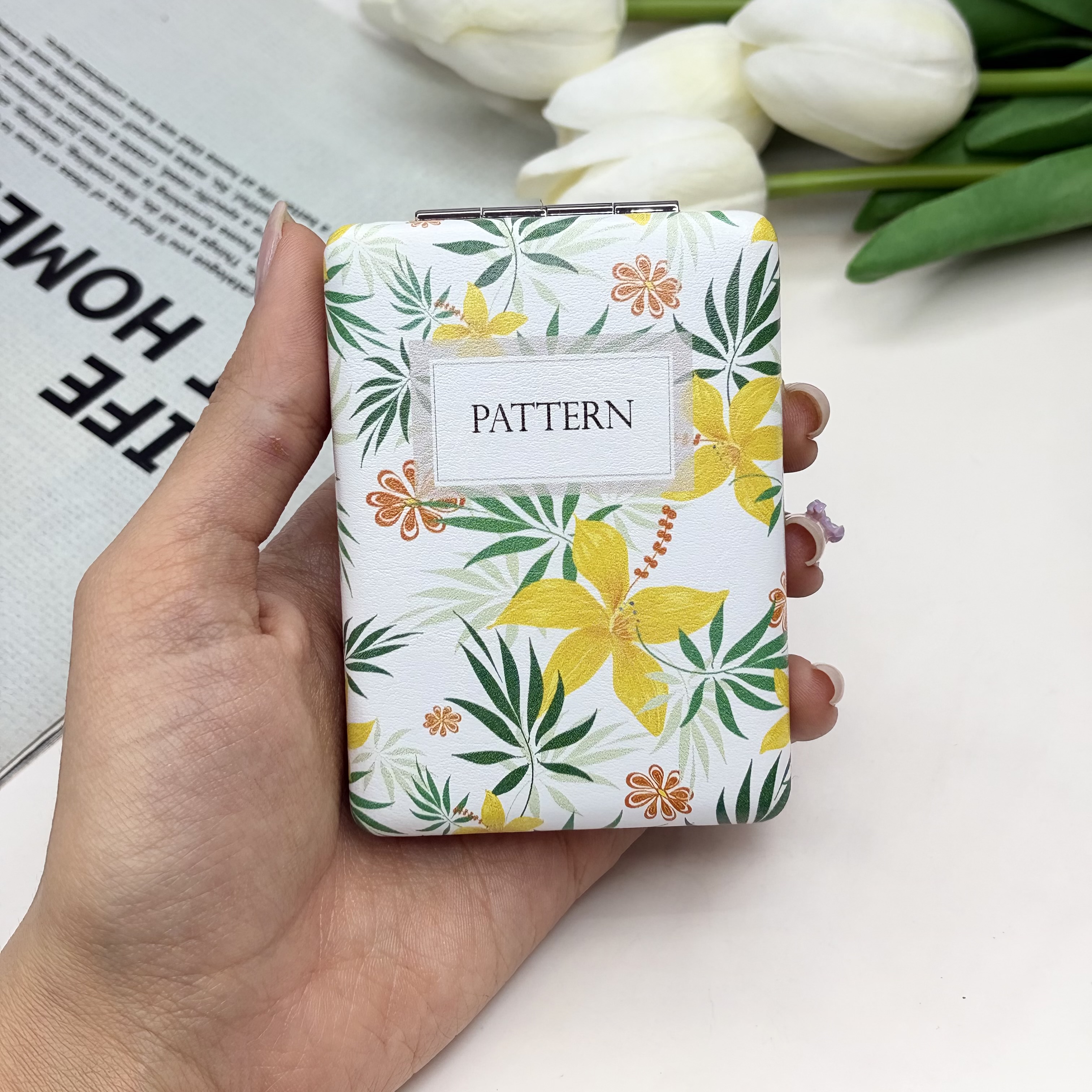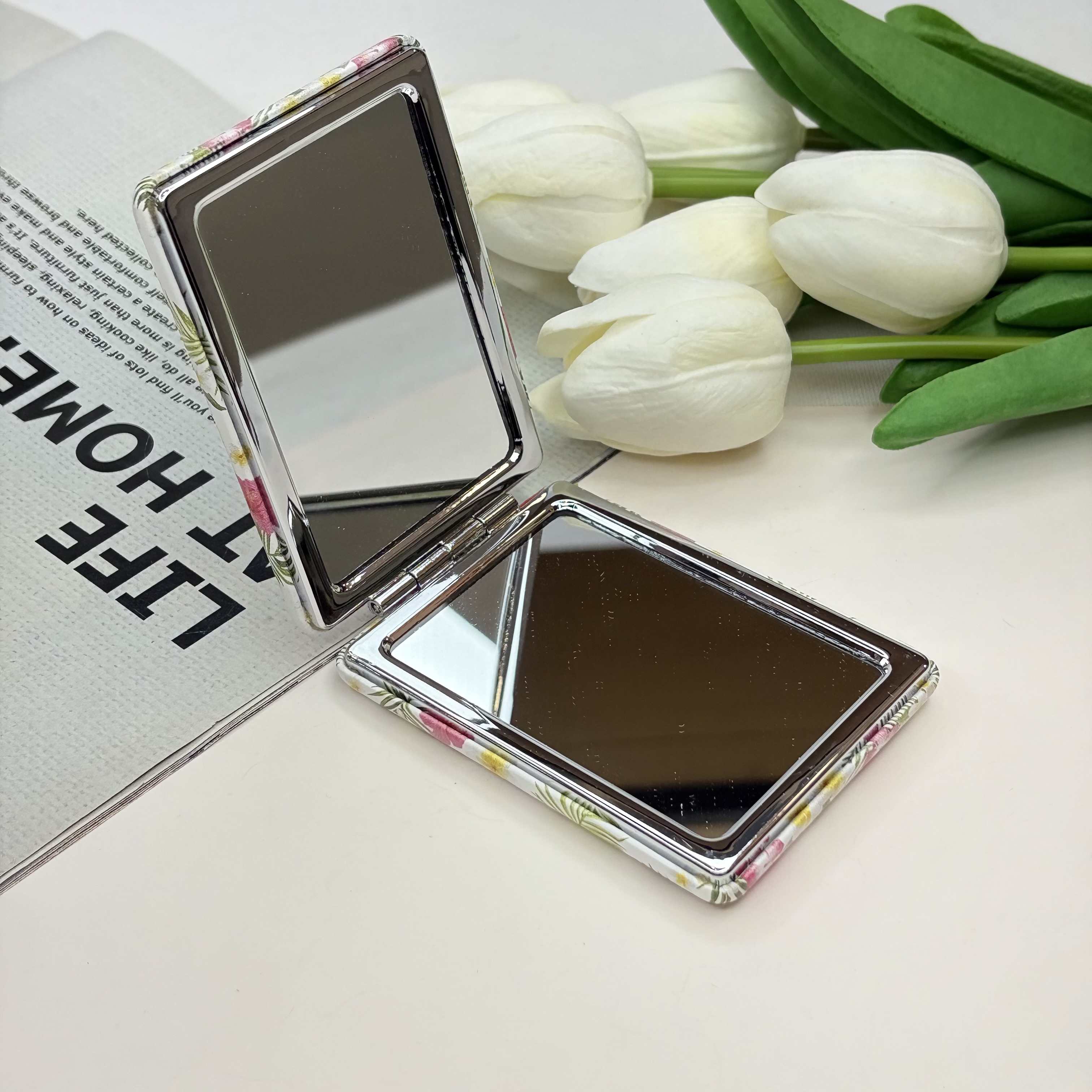 آینه جیبی دوطرفه طرح پترن گلدار مستطیل چرم8.5cm در 6cm