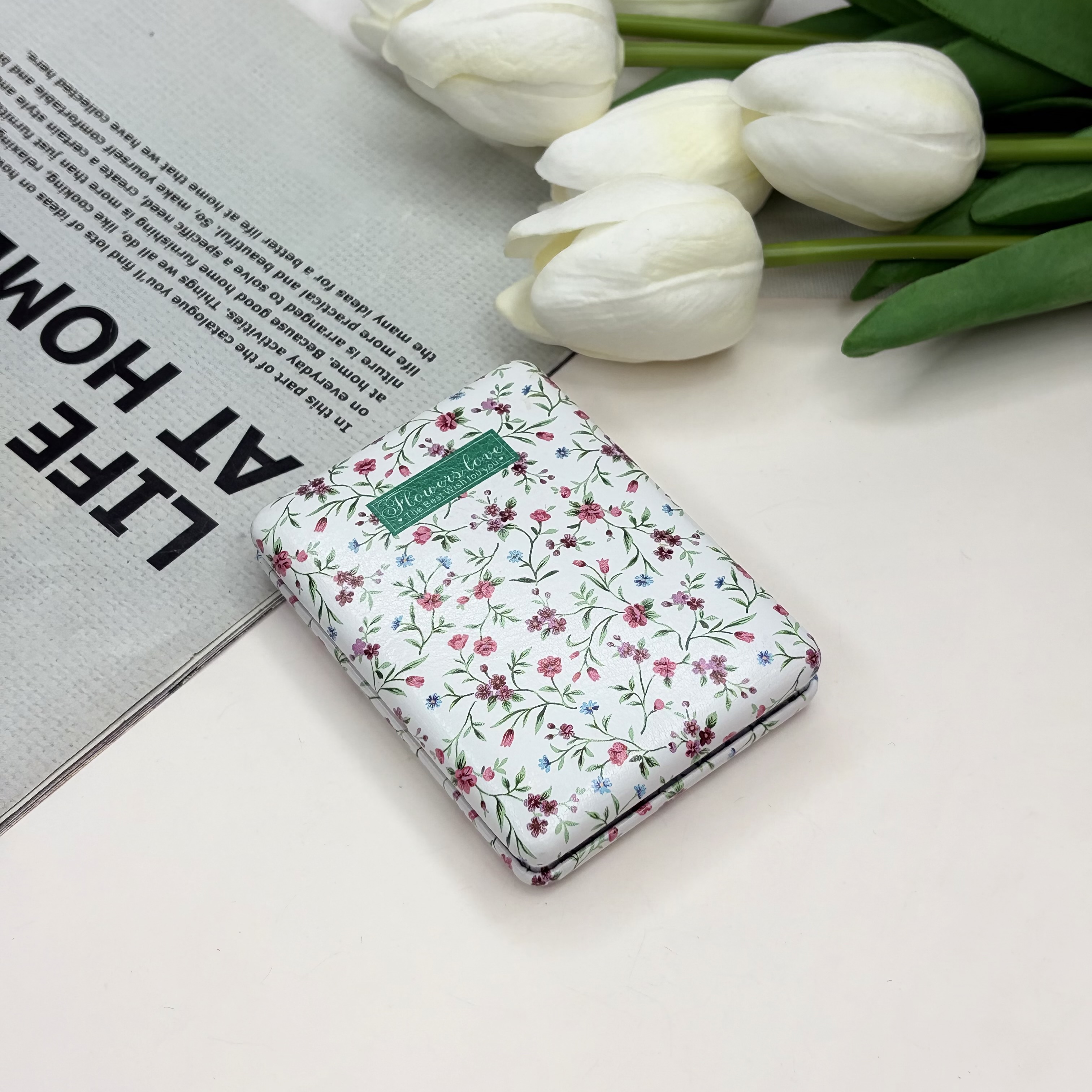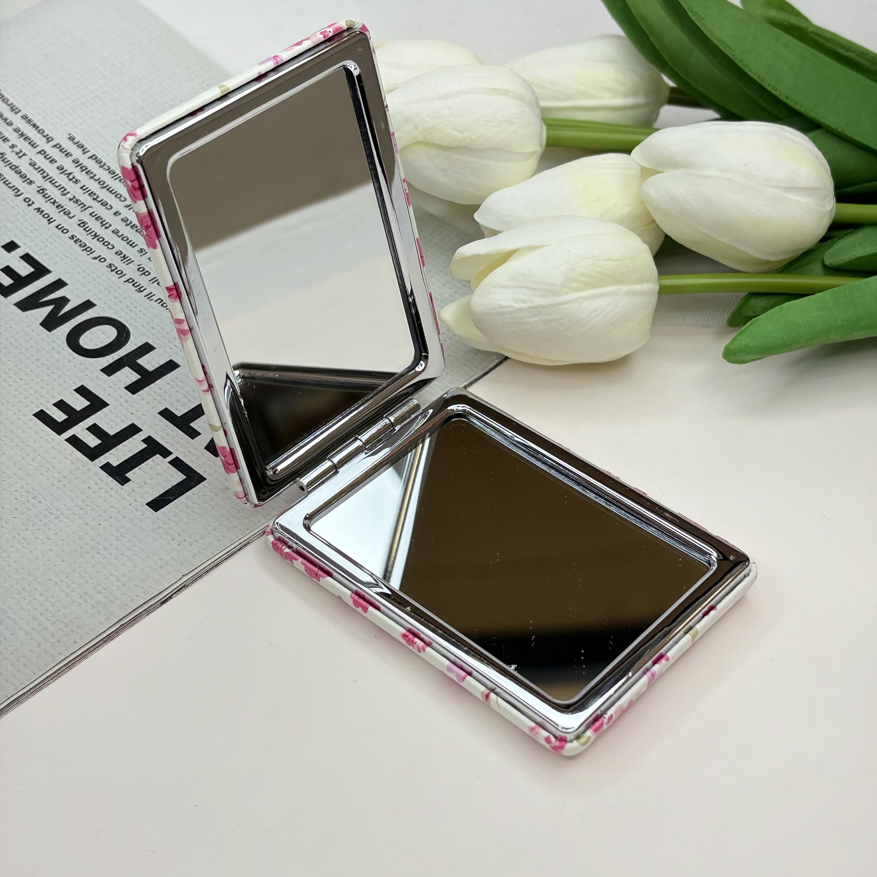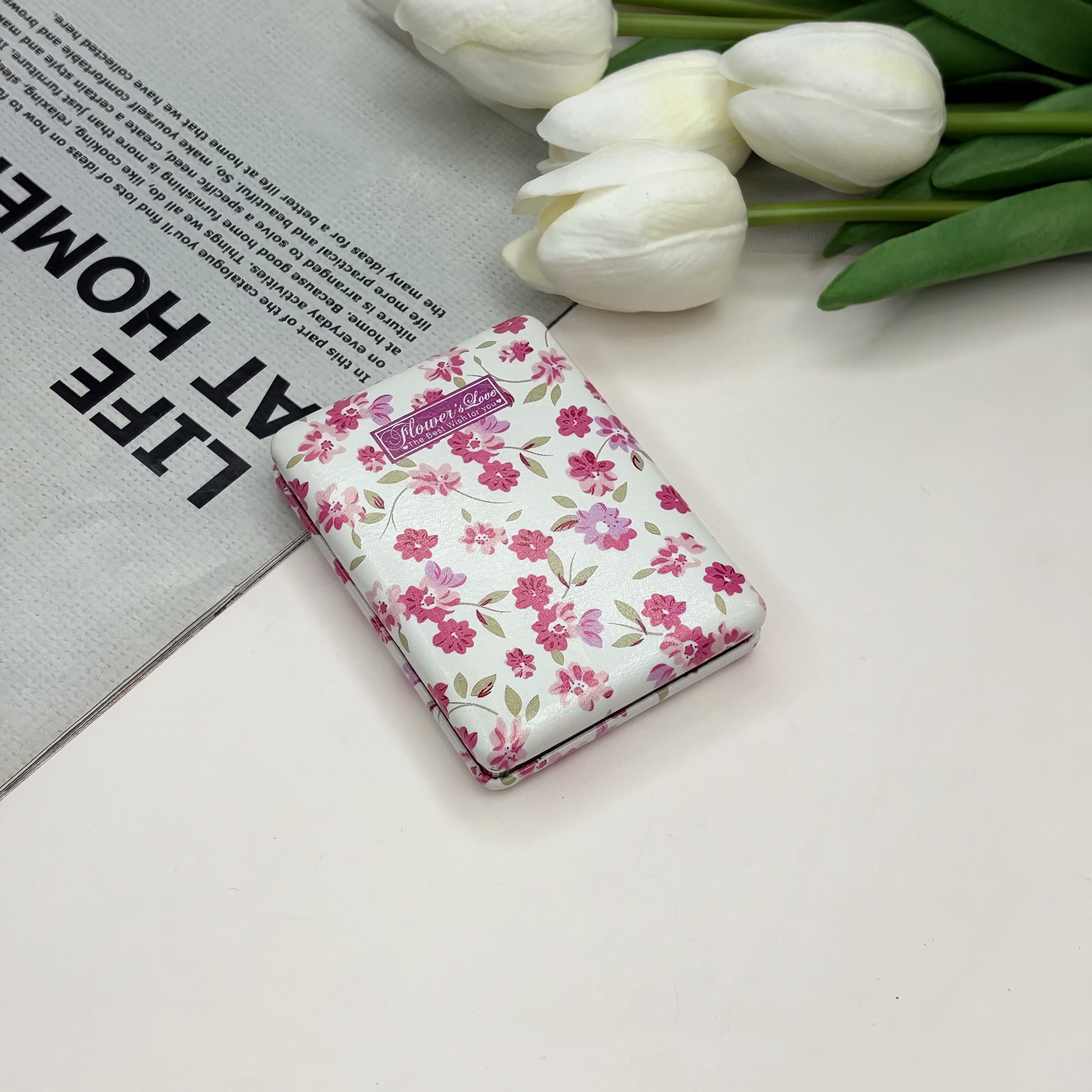 آینه جیبی دوطرفه طرح گلدار ریز چرمی مستطیل8.5cm در 6cm