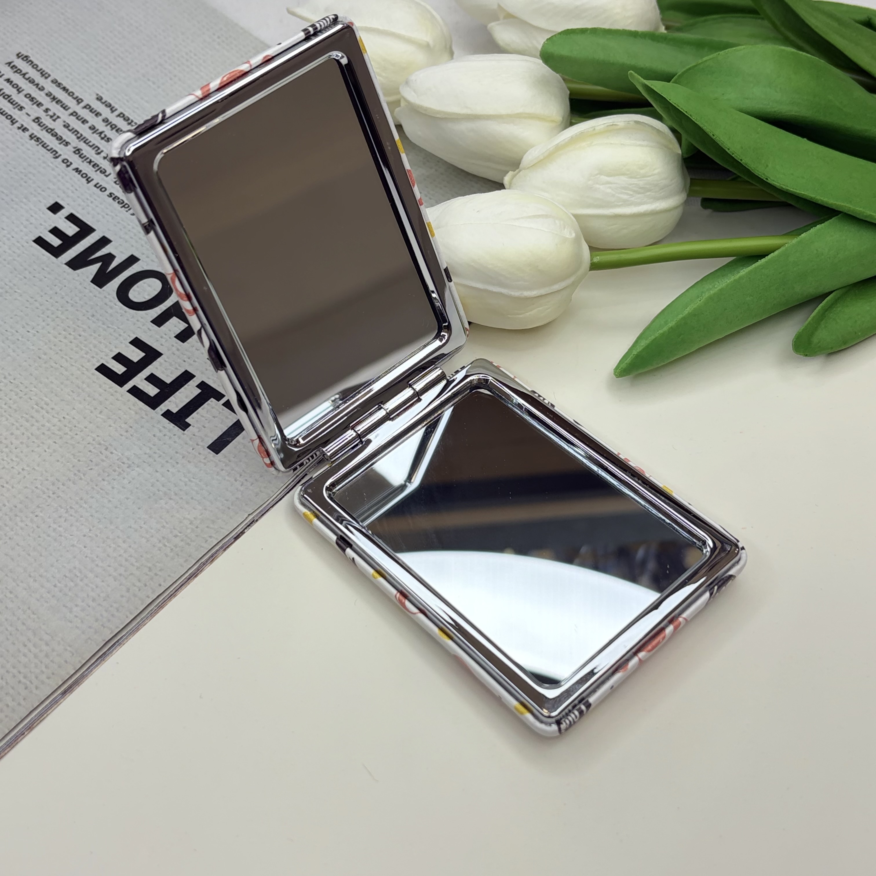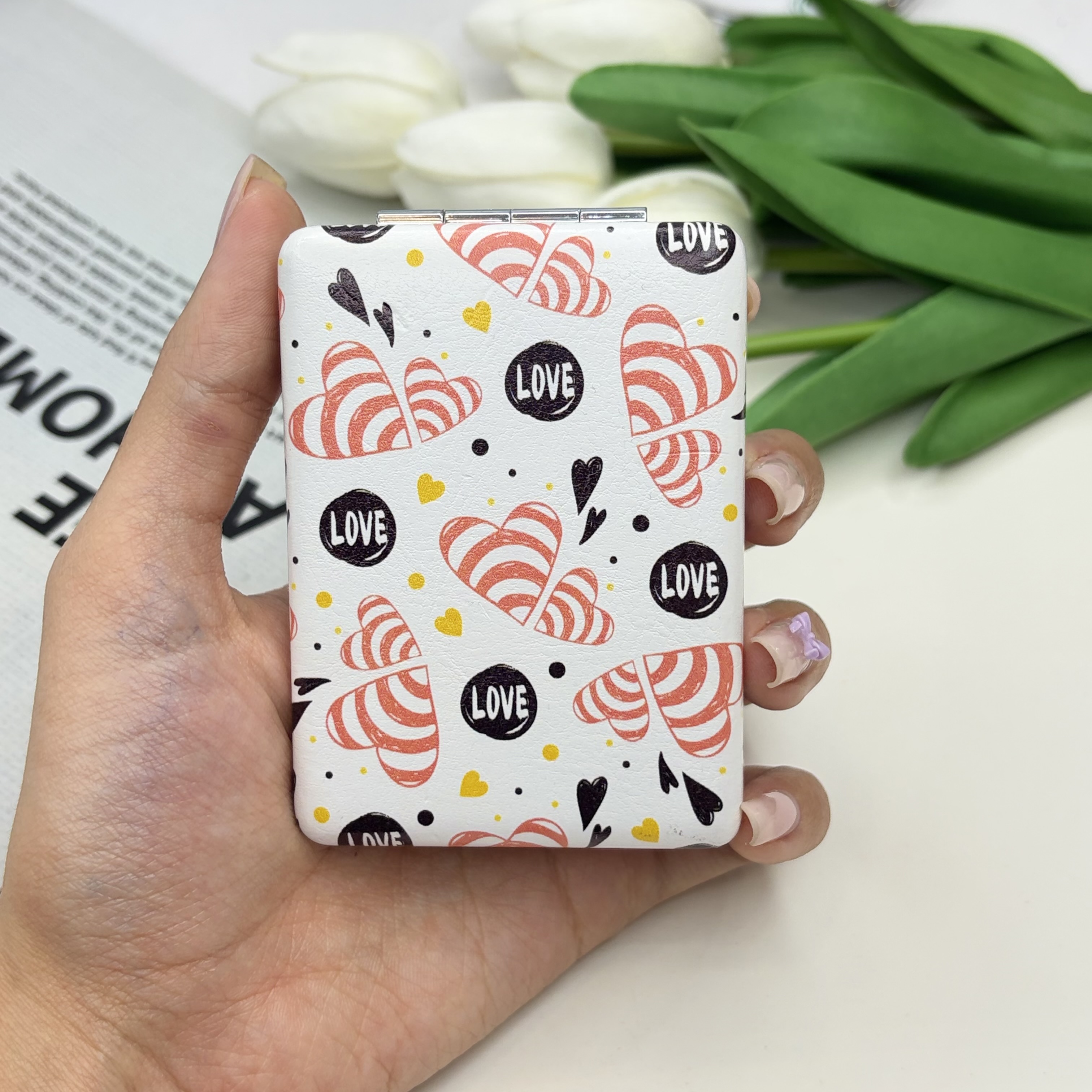 آینه جیبی دوطرفه طرح قلب love مستطیلی 8.5cm در 6cm