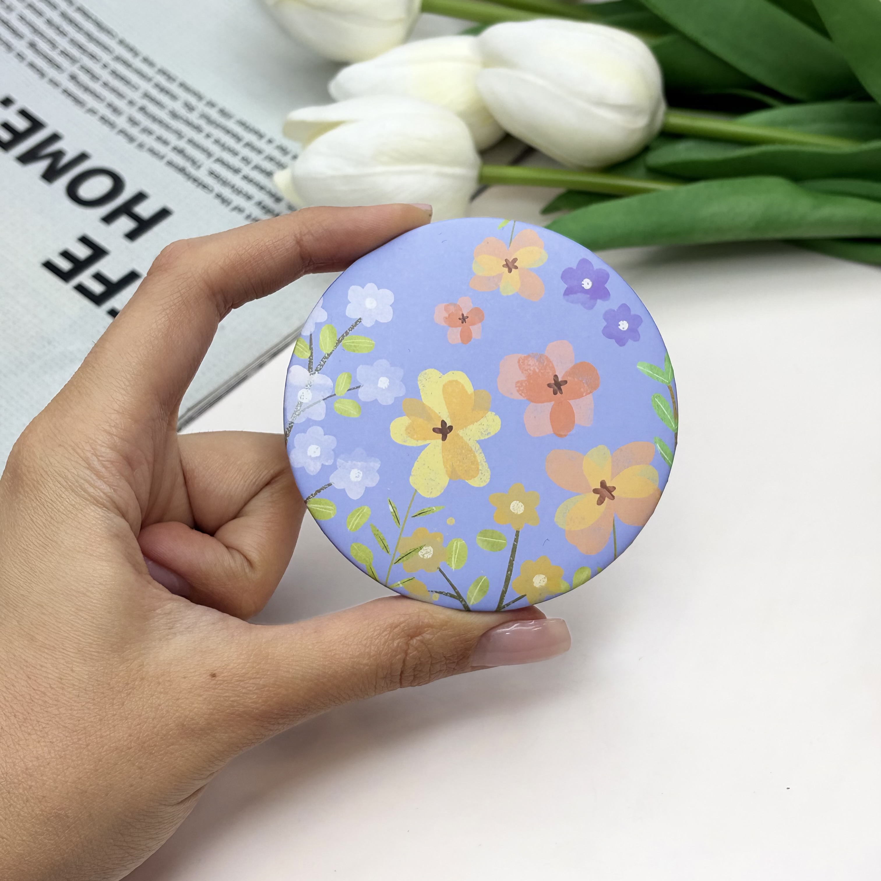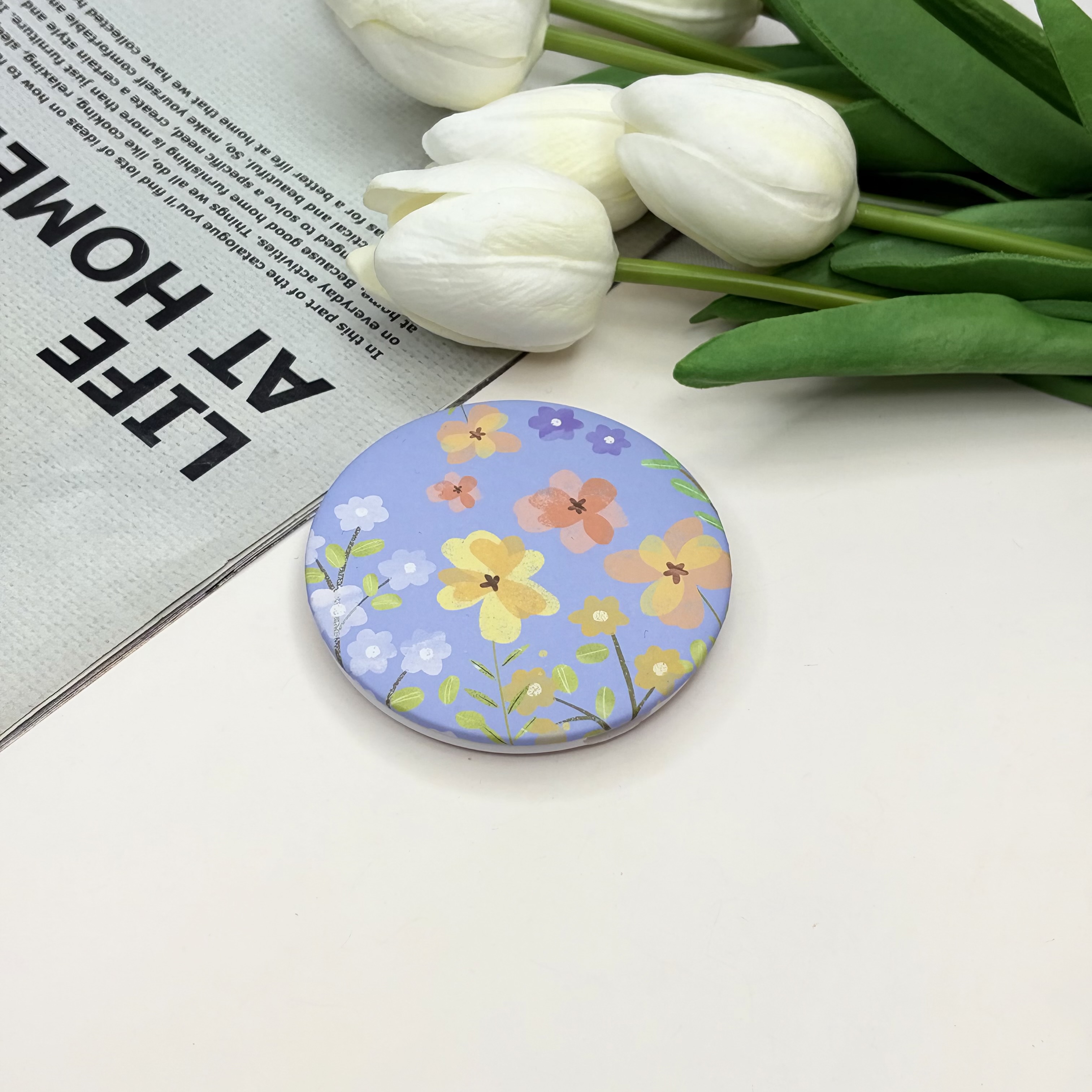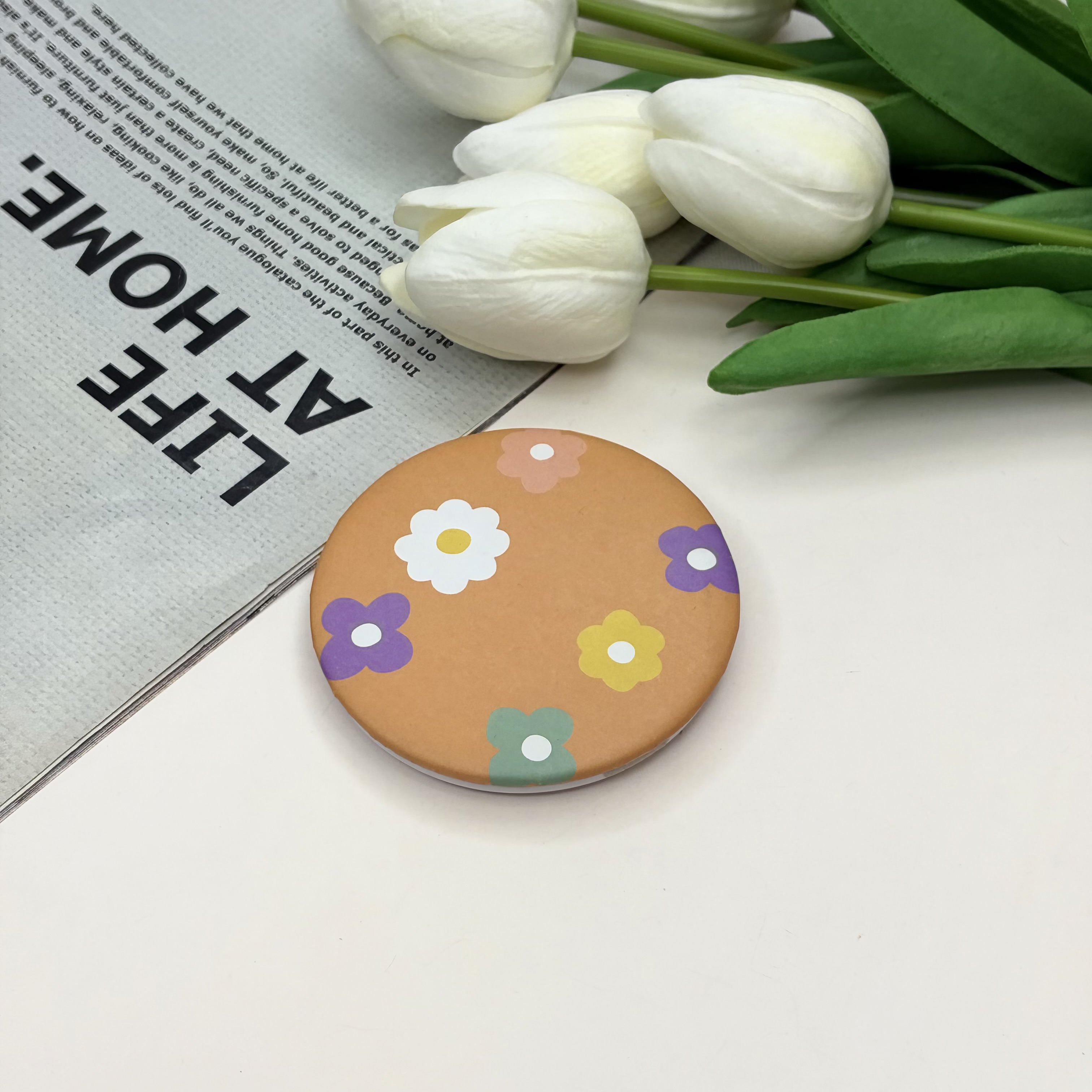آینه جیبی دوطرفه طرح گل دایره ای 7cm