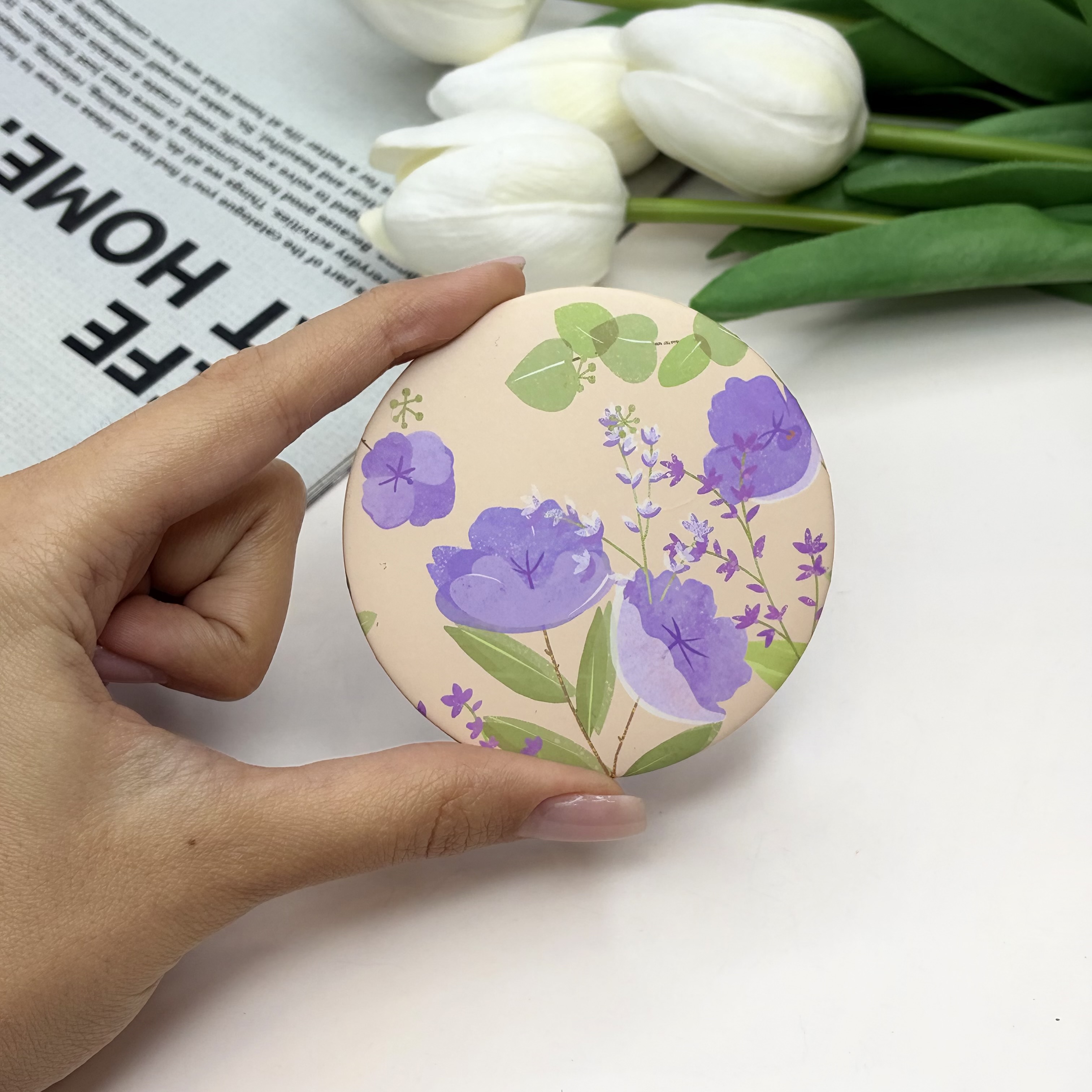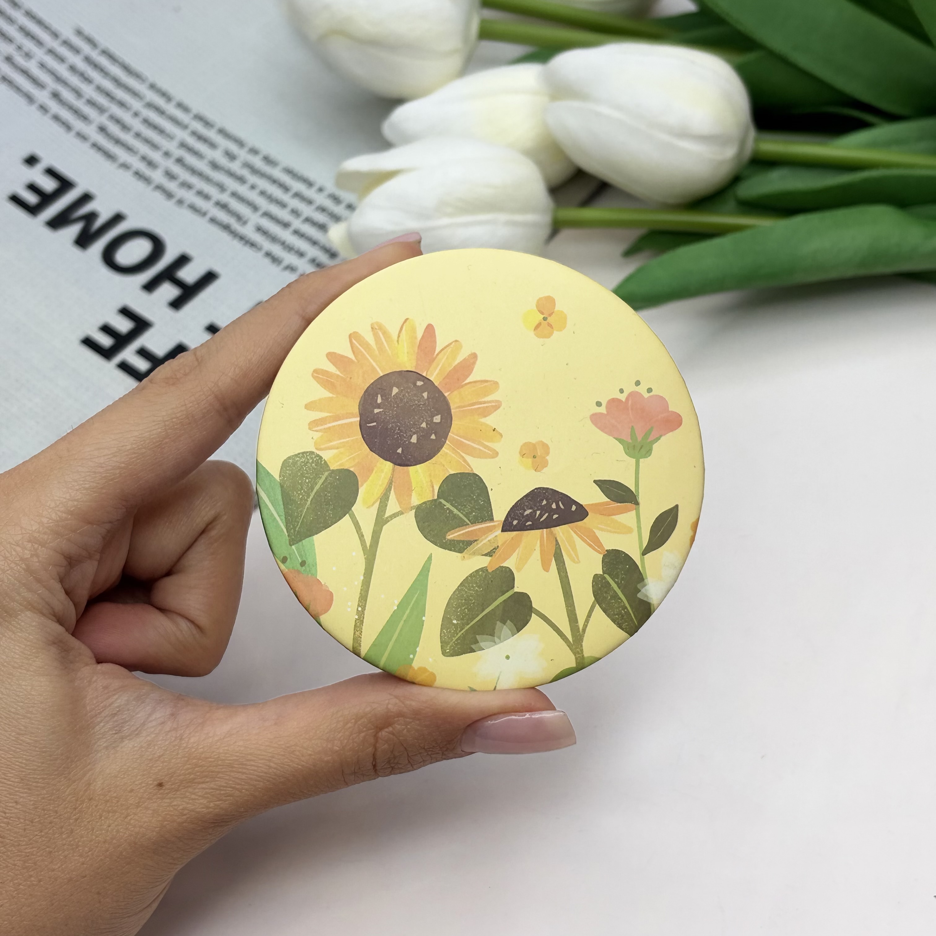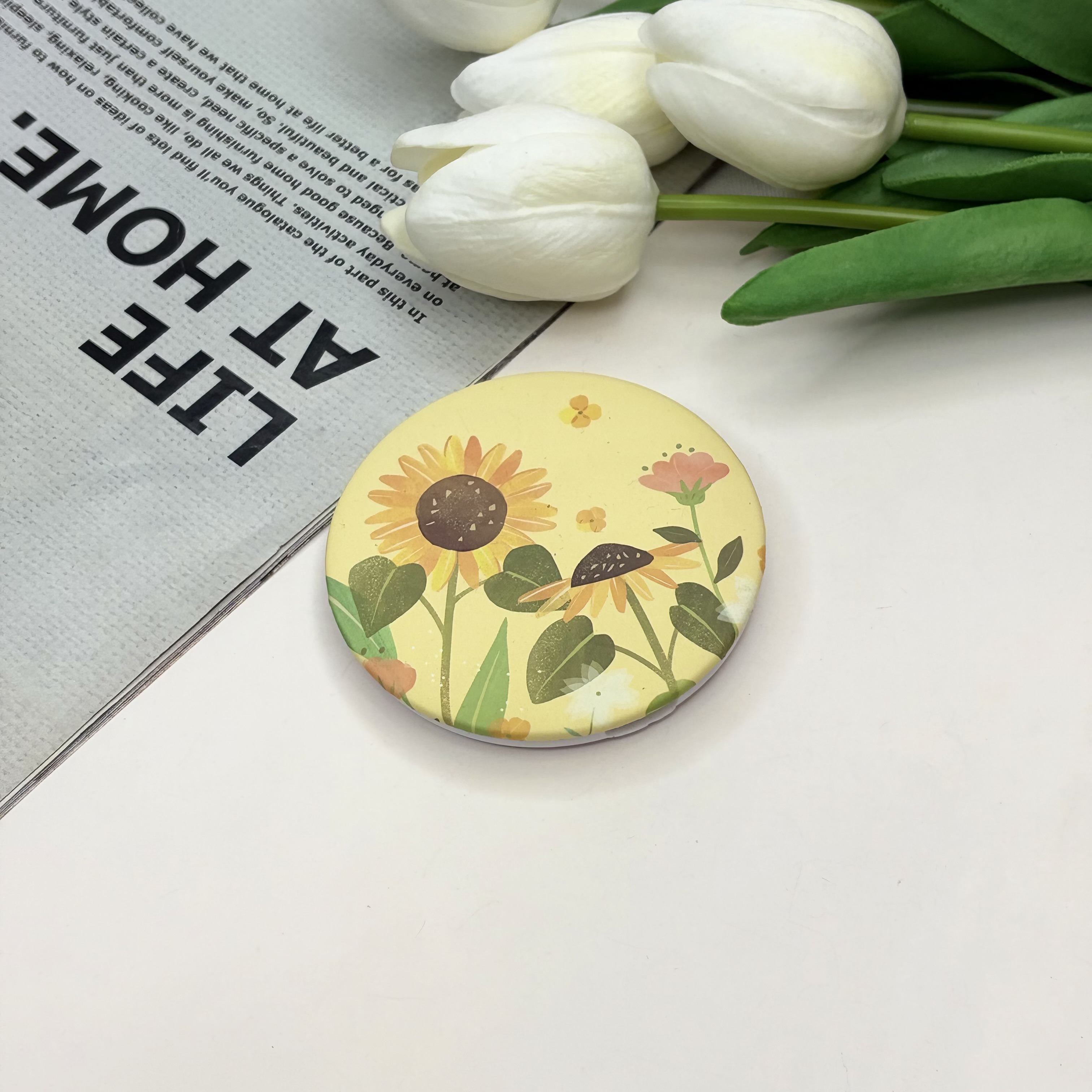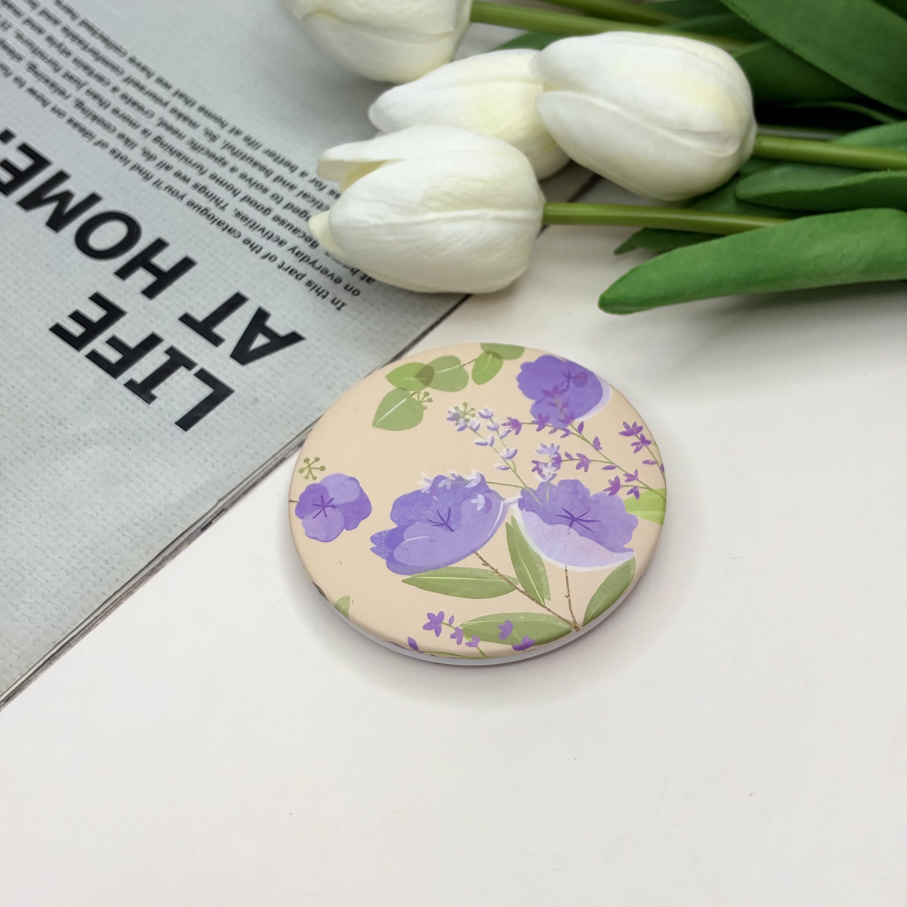 آینه جیبی دوطرفه طرح گل دایره ای 7cm