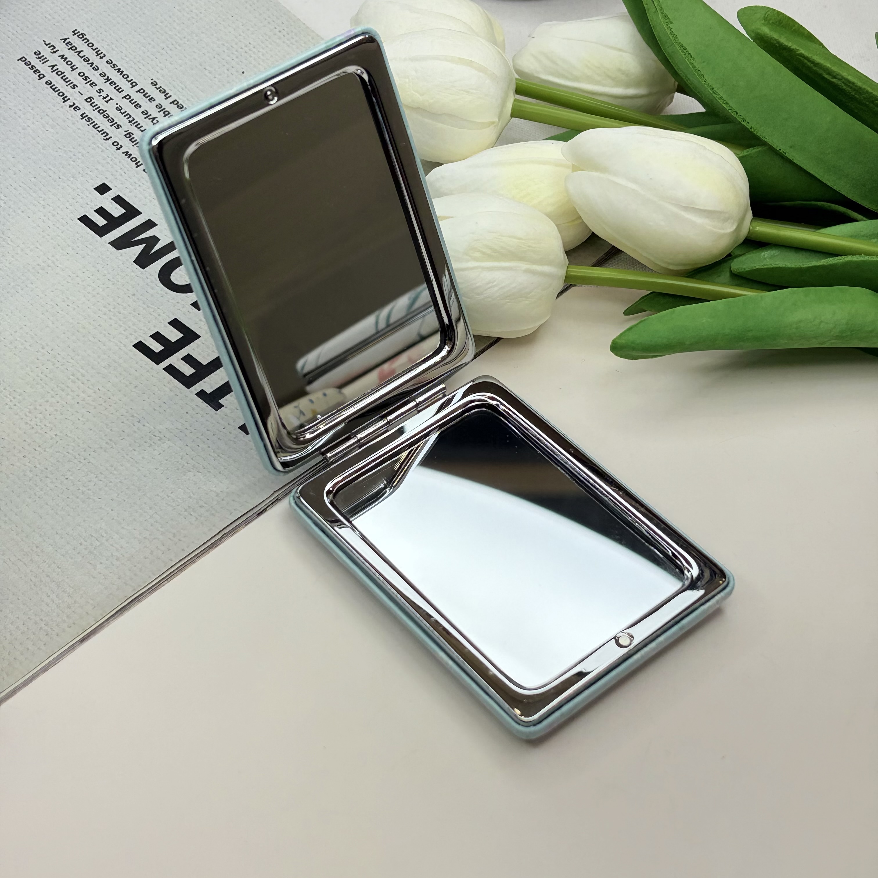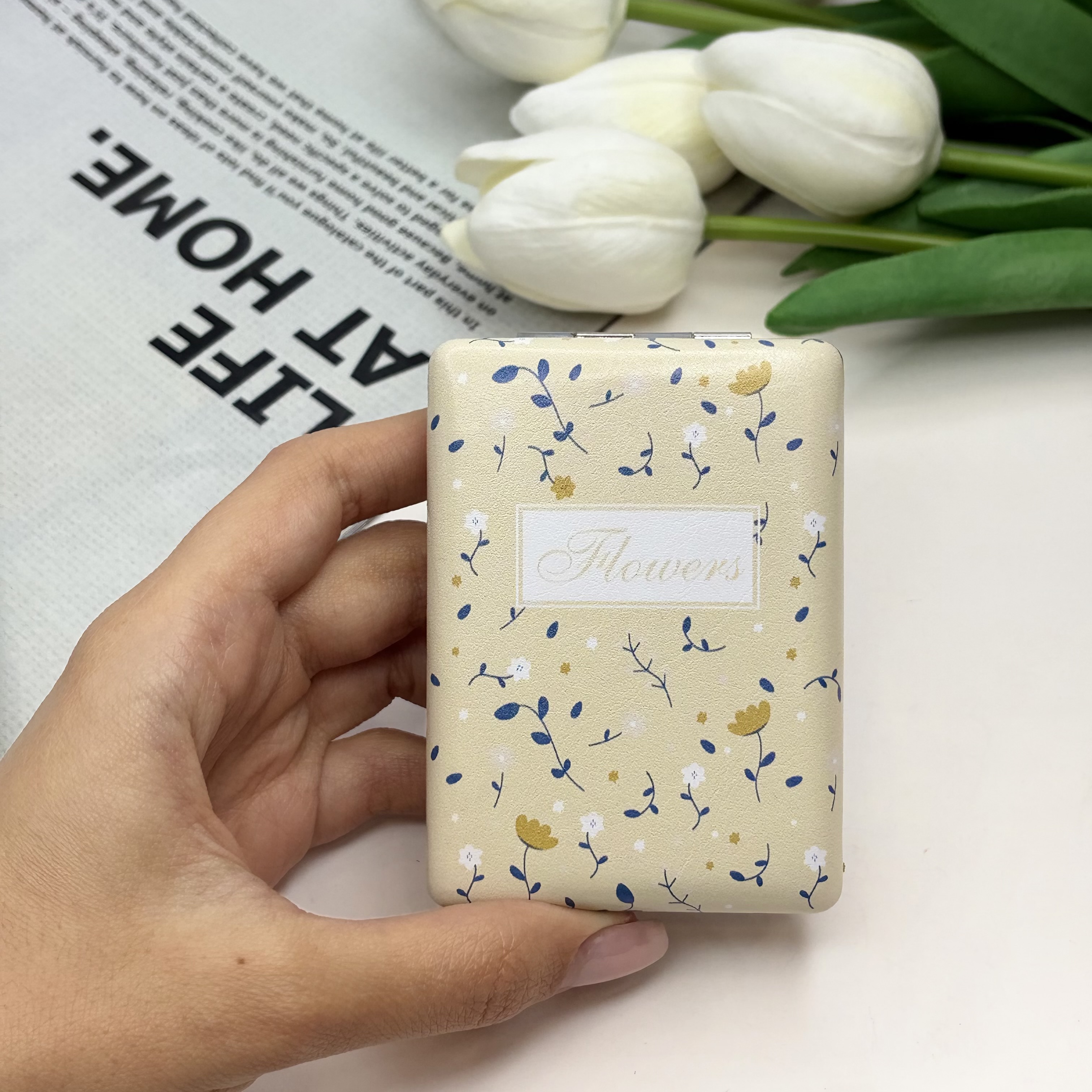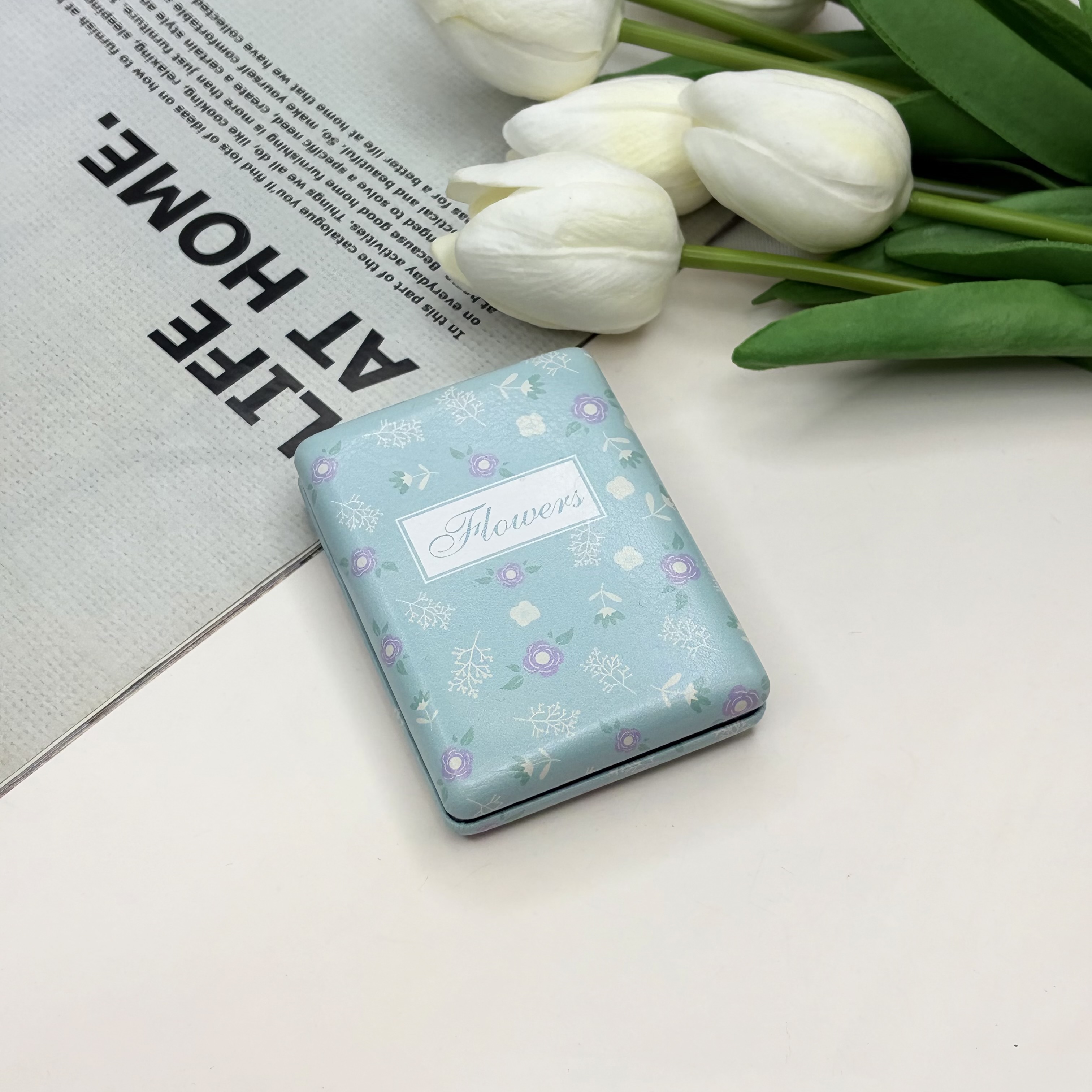آینه جیبی دوطرفه طرح گلدار ریز مستطیلی چرم 8.5cm در 6cm