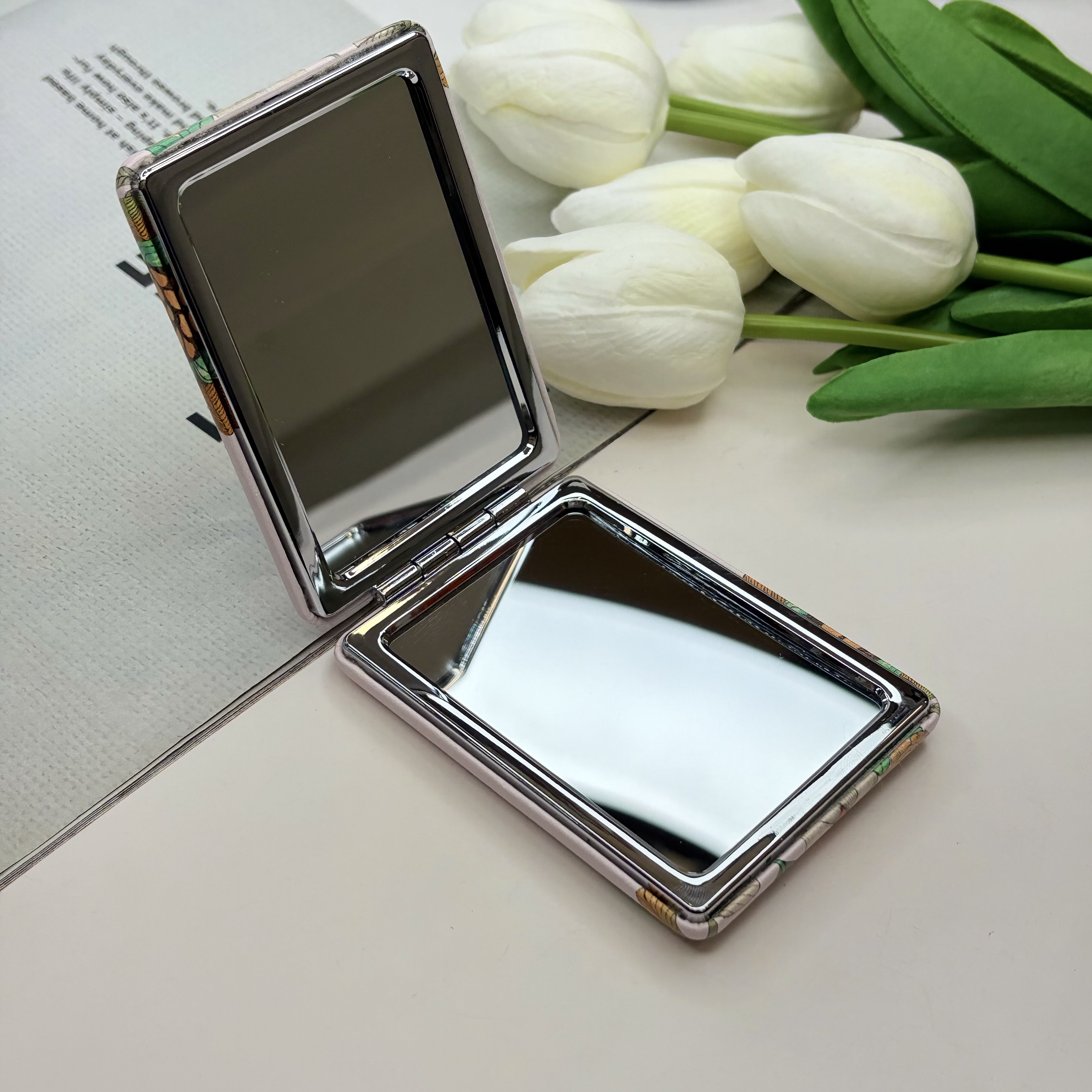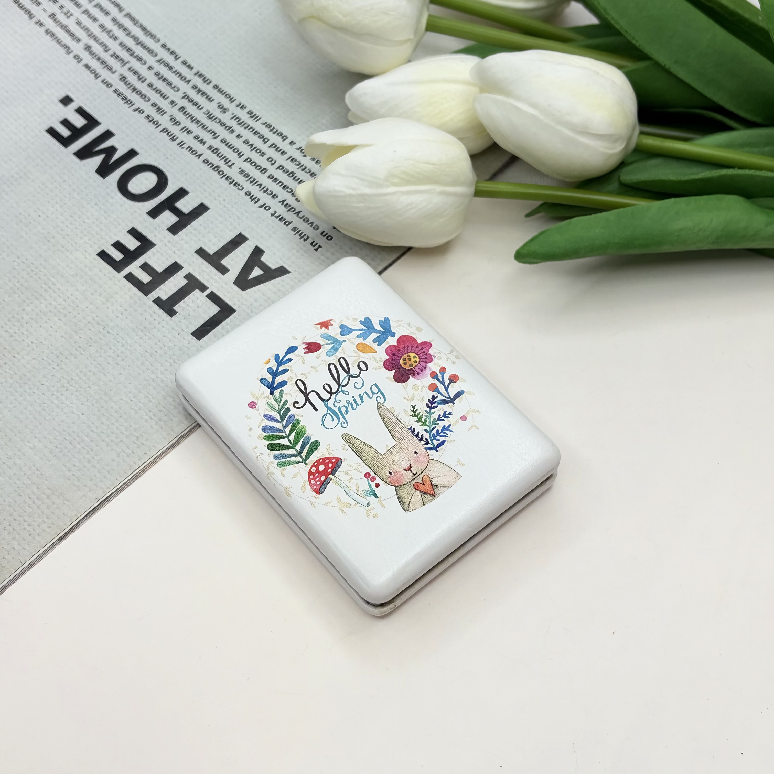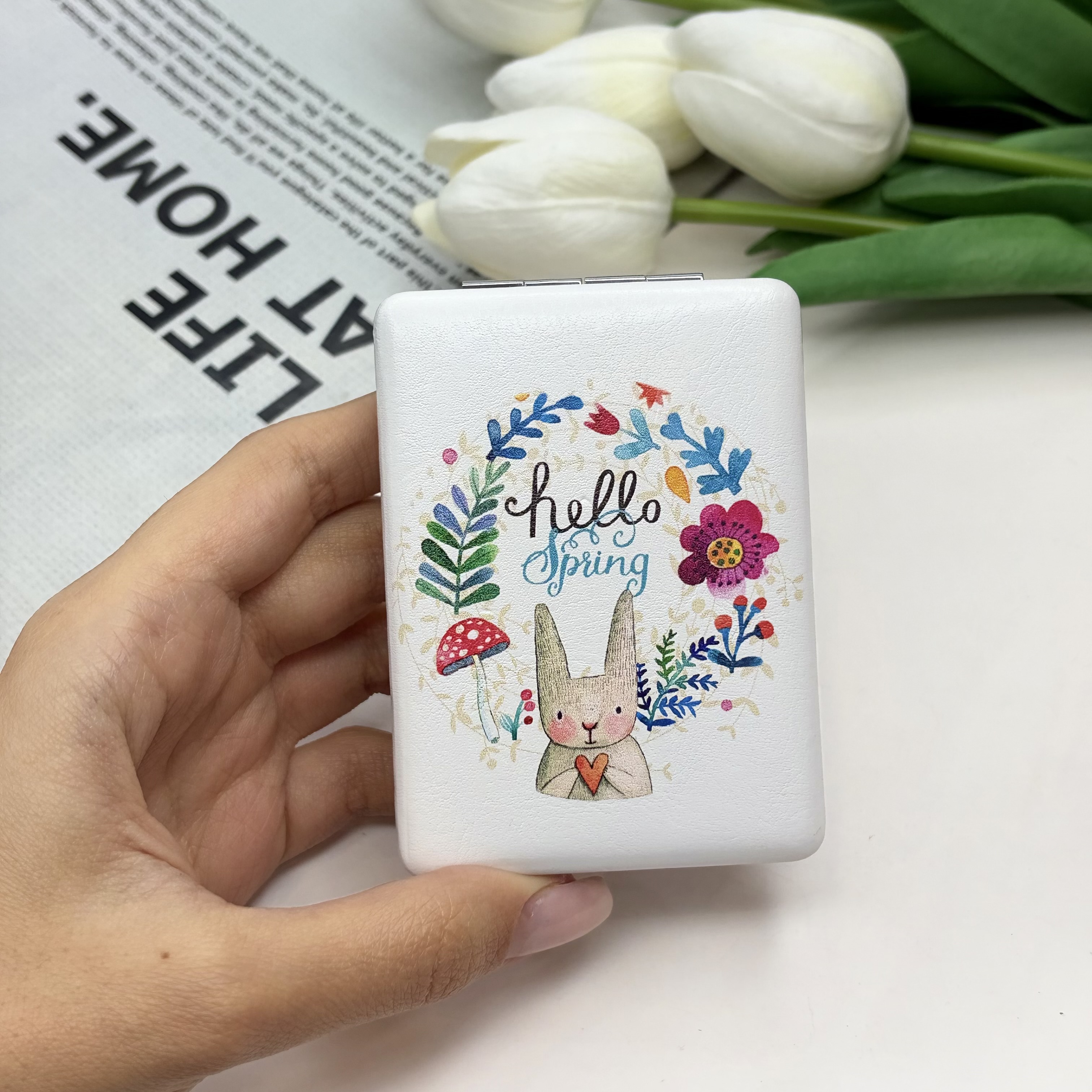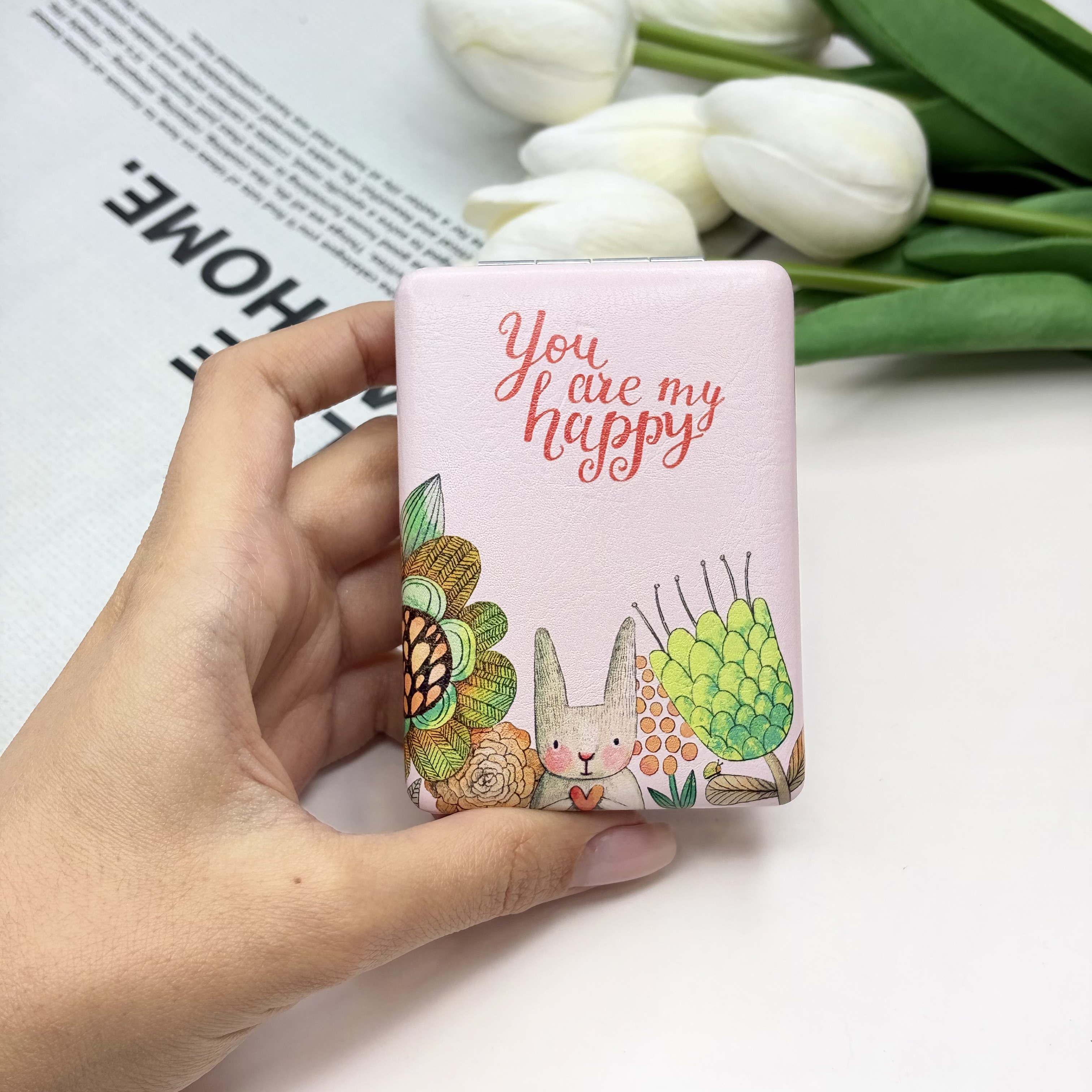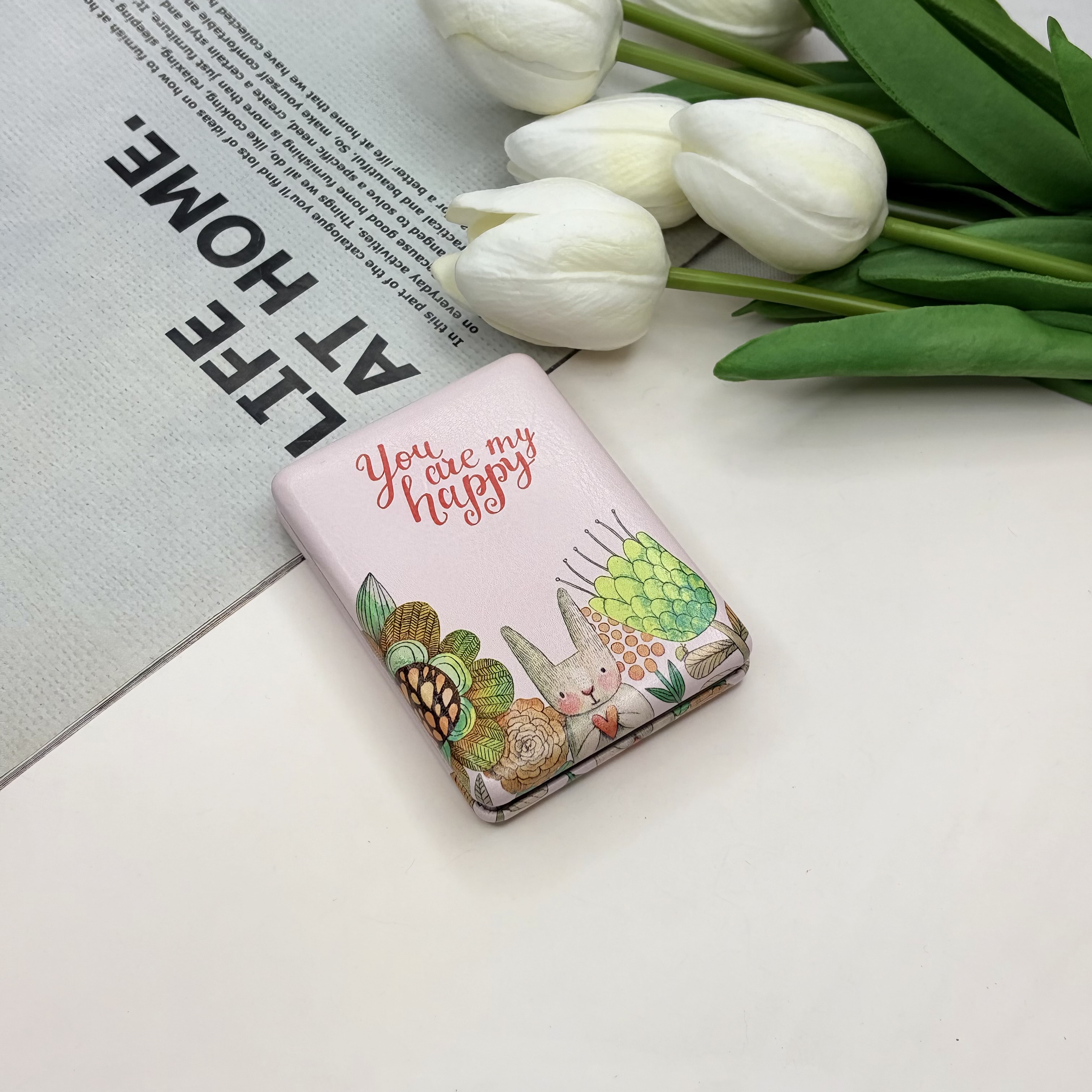 آینه جیبی دوطرفه مستطیلی طرح خرگوش چرم 8.5cm در 6cm