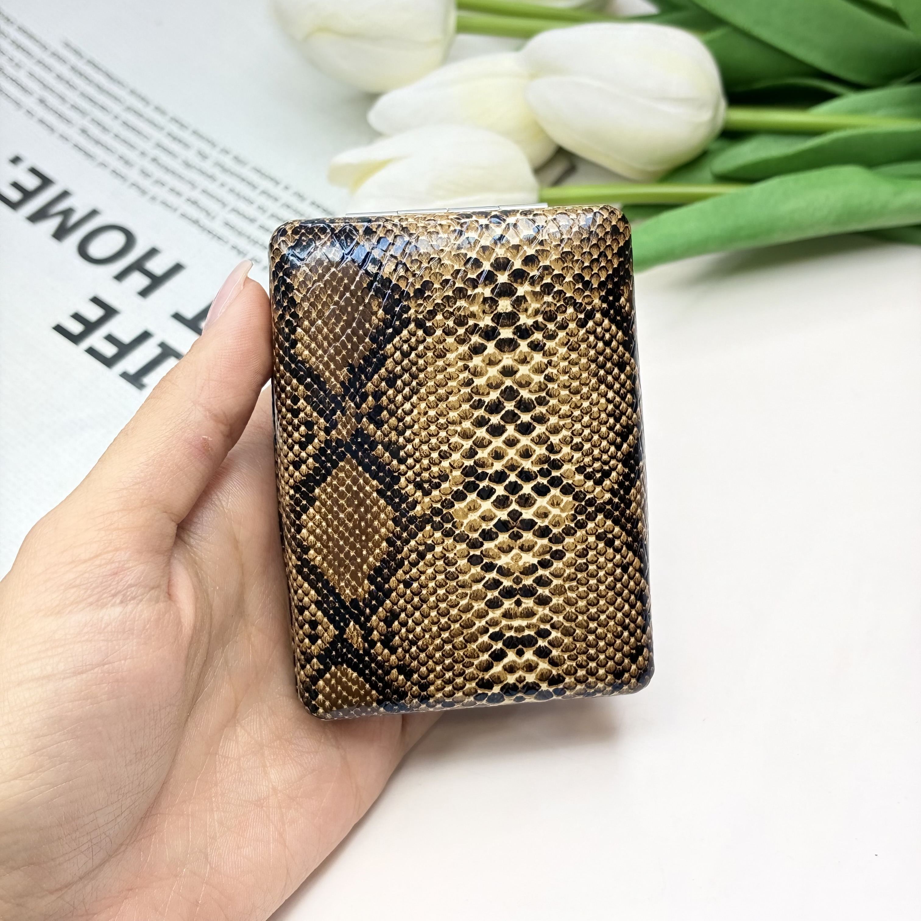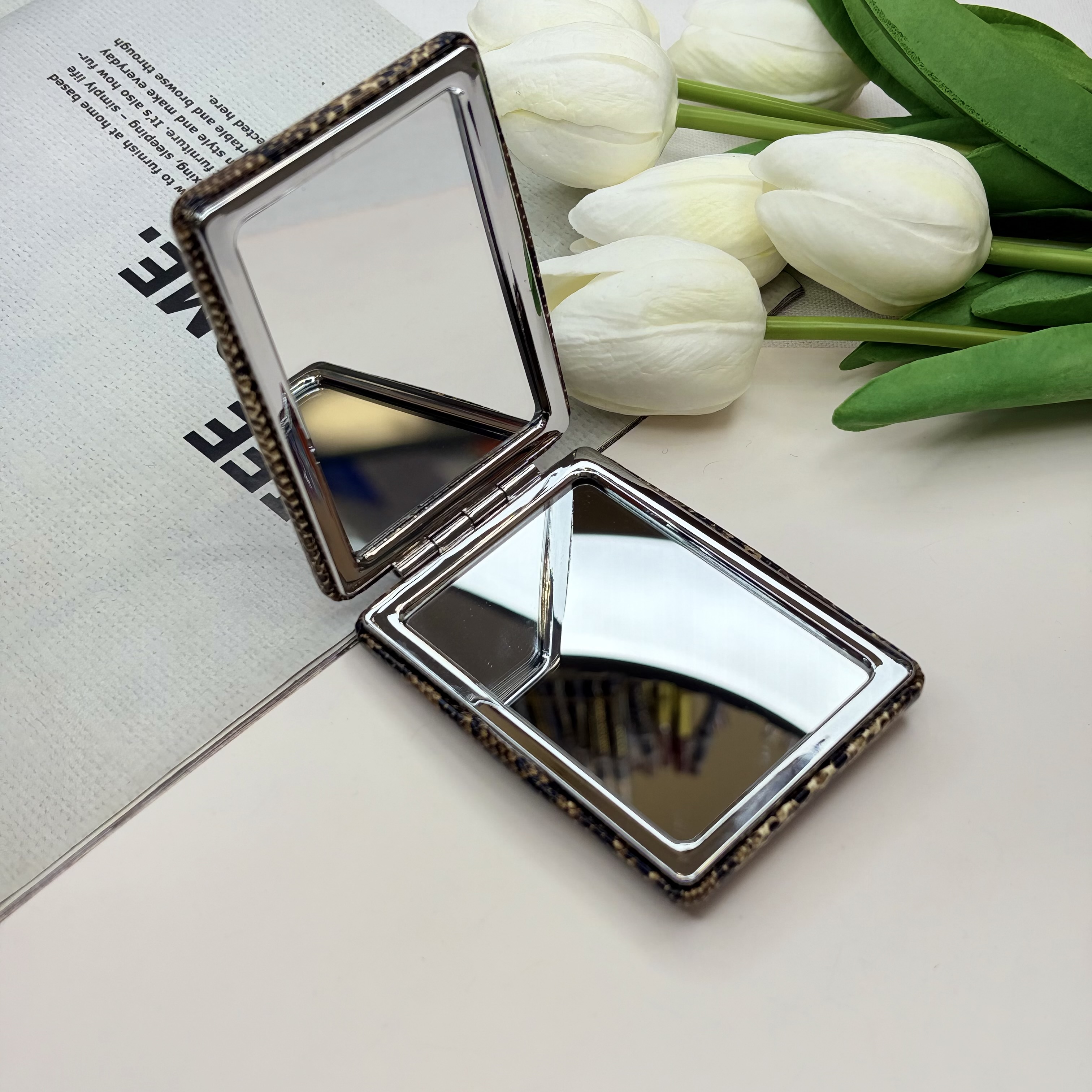آینه جیبی دوطرفه مستطیلی طرح پوست مار چرم 8.5cm در 6cm