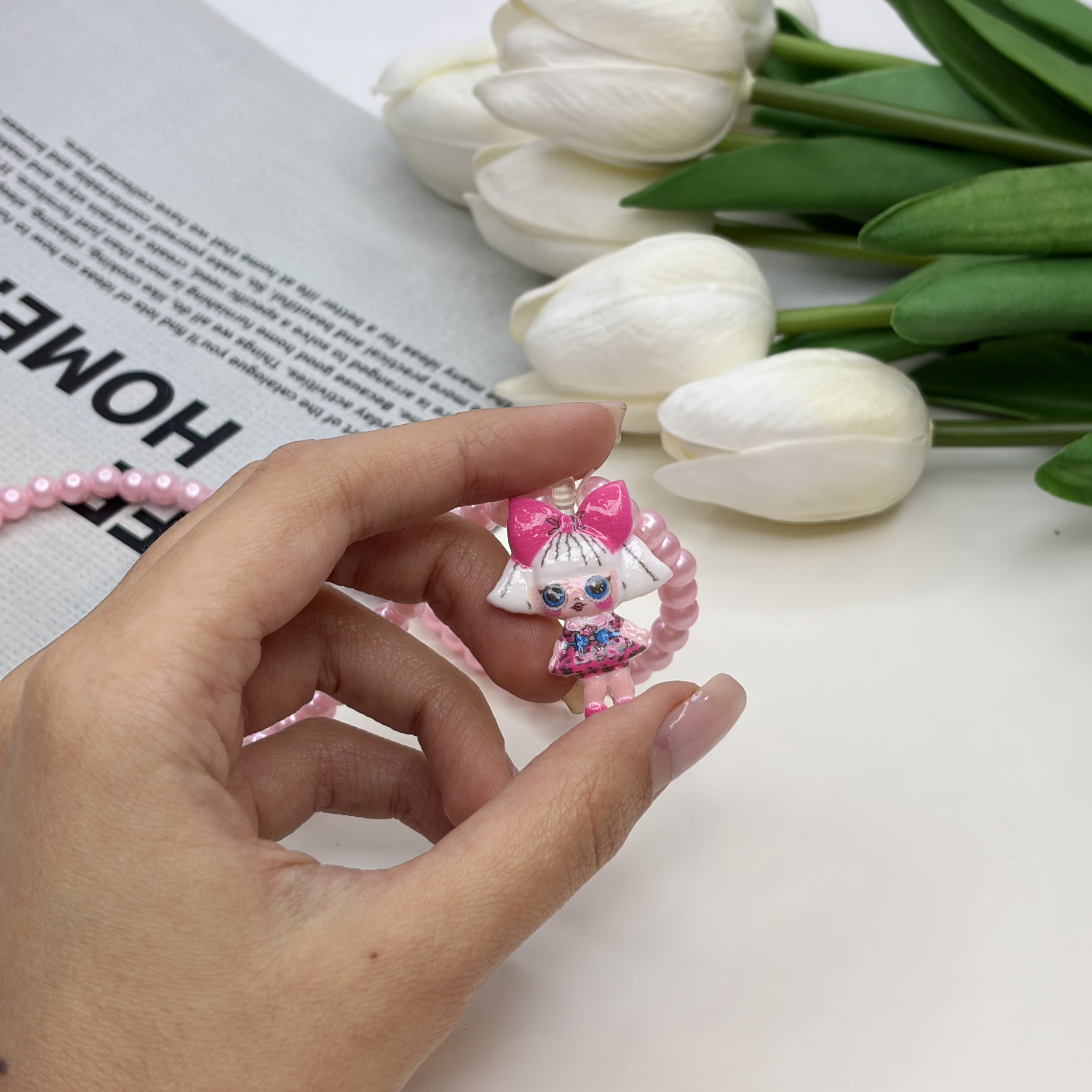 پک گردنبند و دستبند مروارید صورتی طرح پیکسل دخترونه