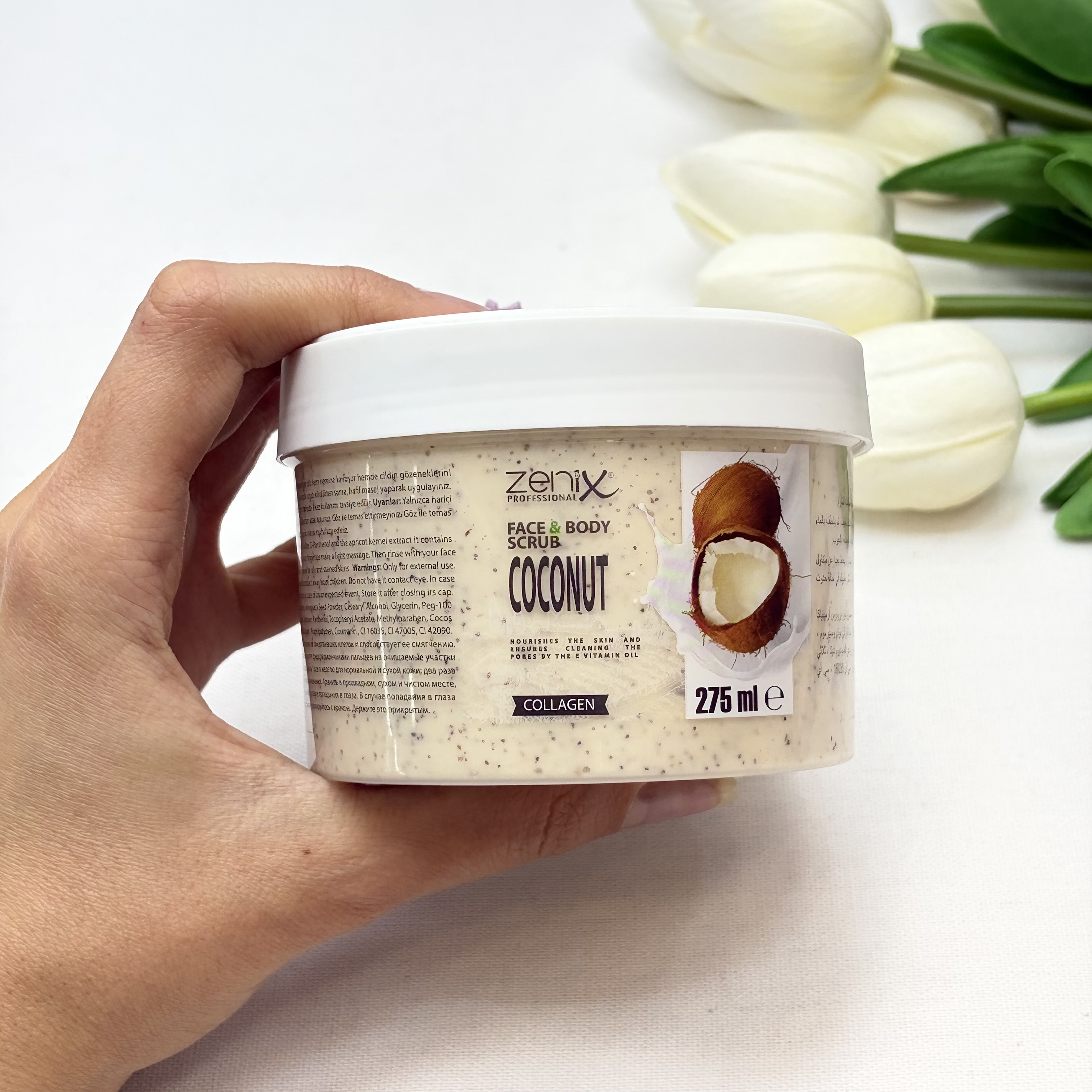 اسکراب صورت و‌‌ بدن رایحه coconutنارگیل 275میل حاوی کلاژن