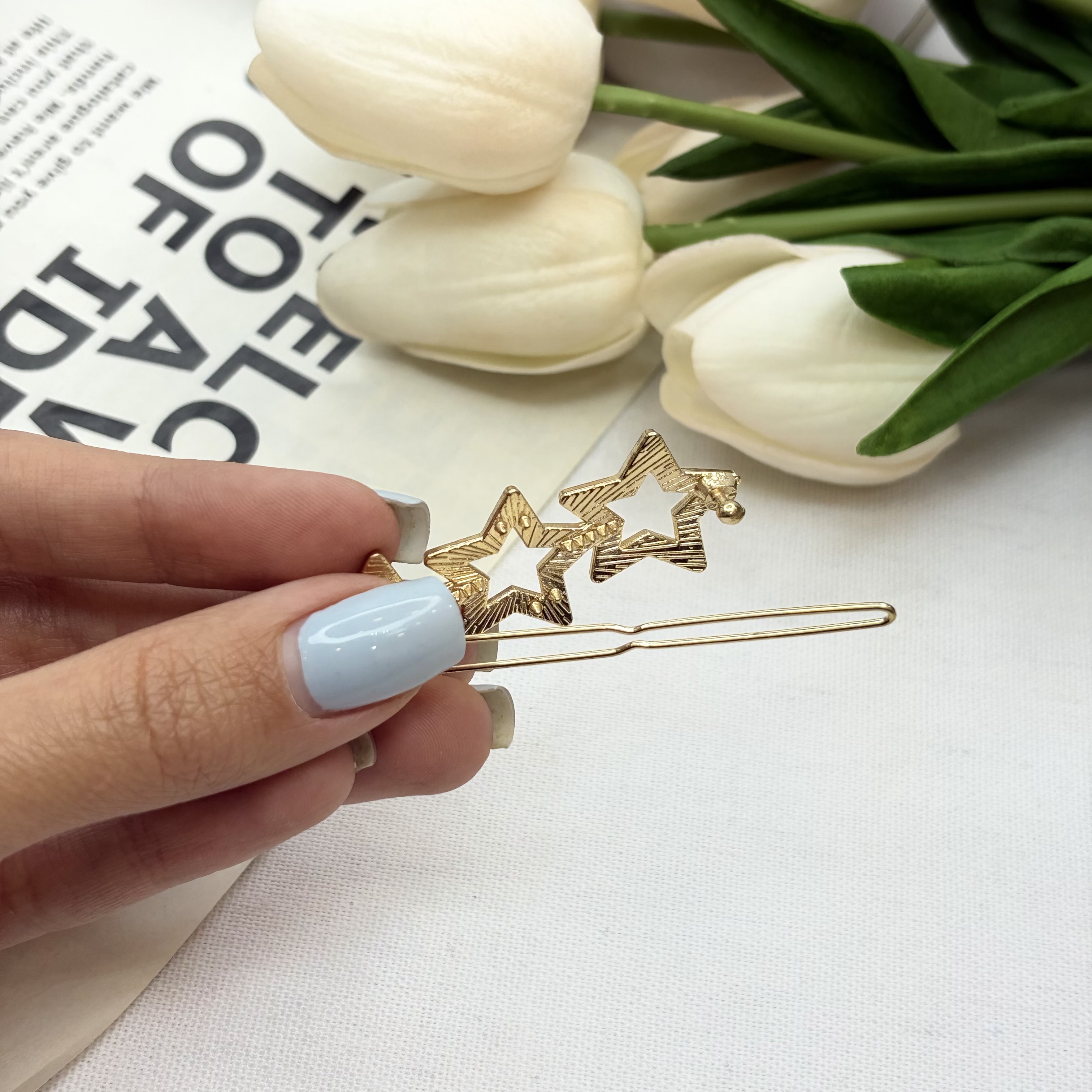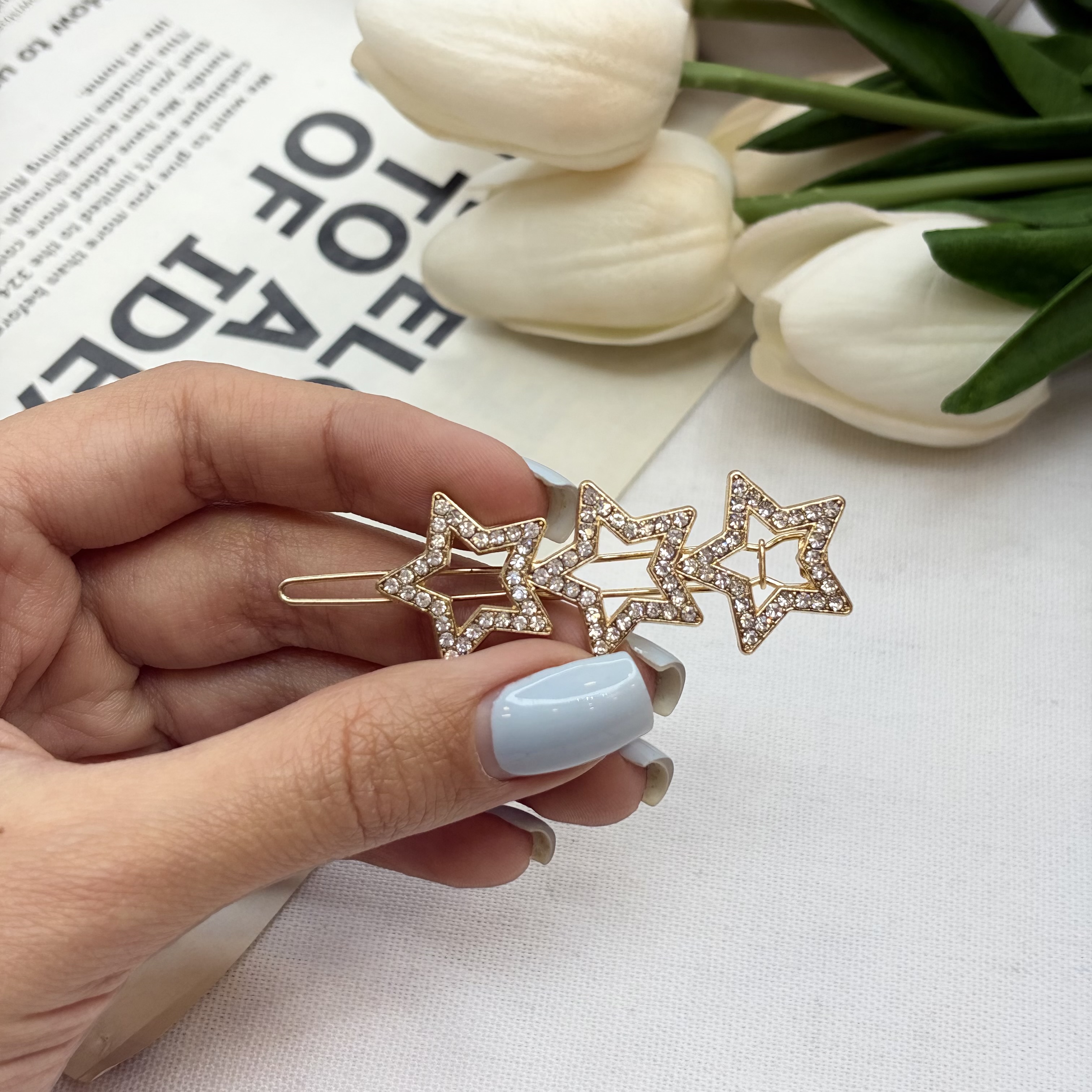 گیره مو فلزی ستاره سه تایی نگین دار6/5cm