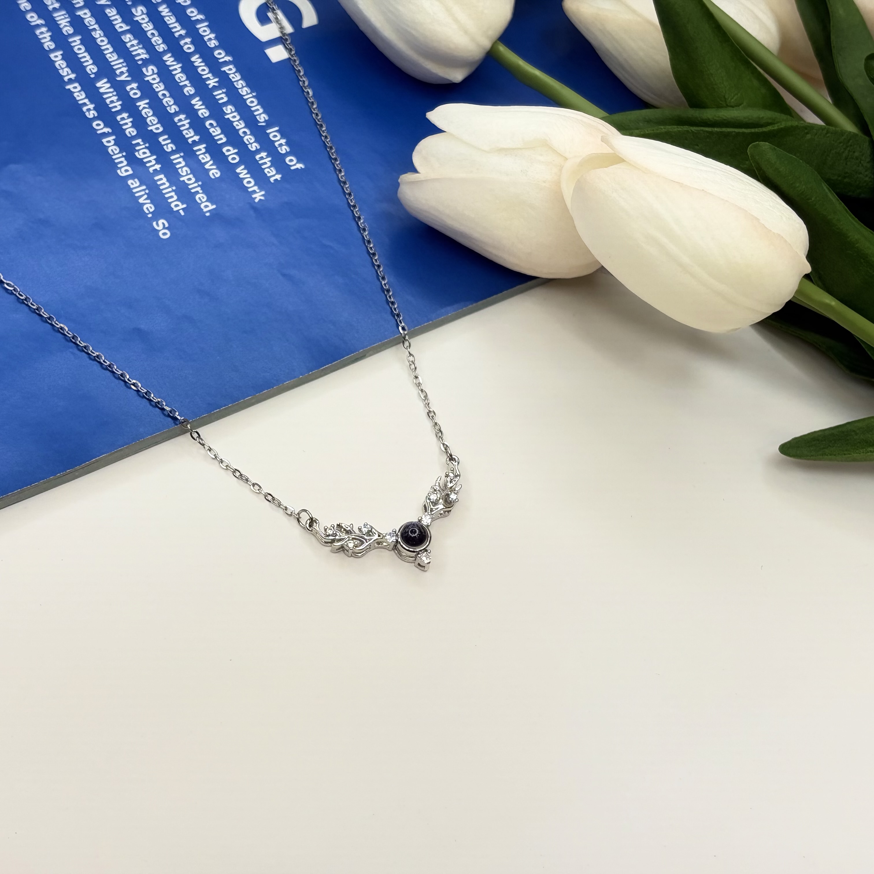 گردنبند دوستت دارم به صد بان دنیا تلسکوپی رنگ‌نقره ای طرح شاخ گوزن